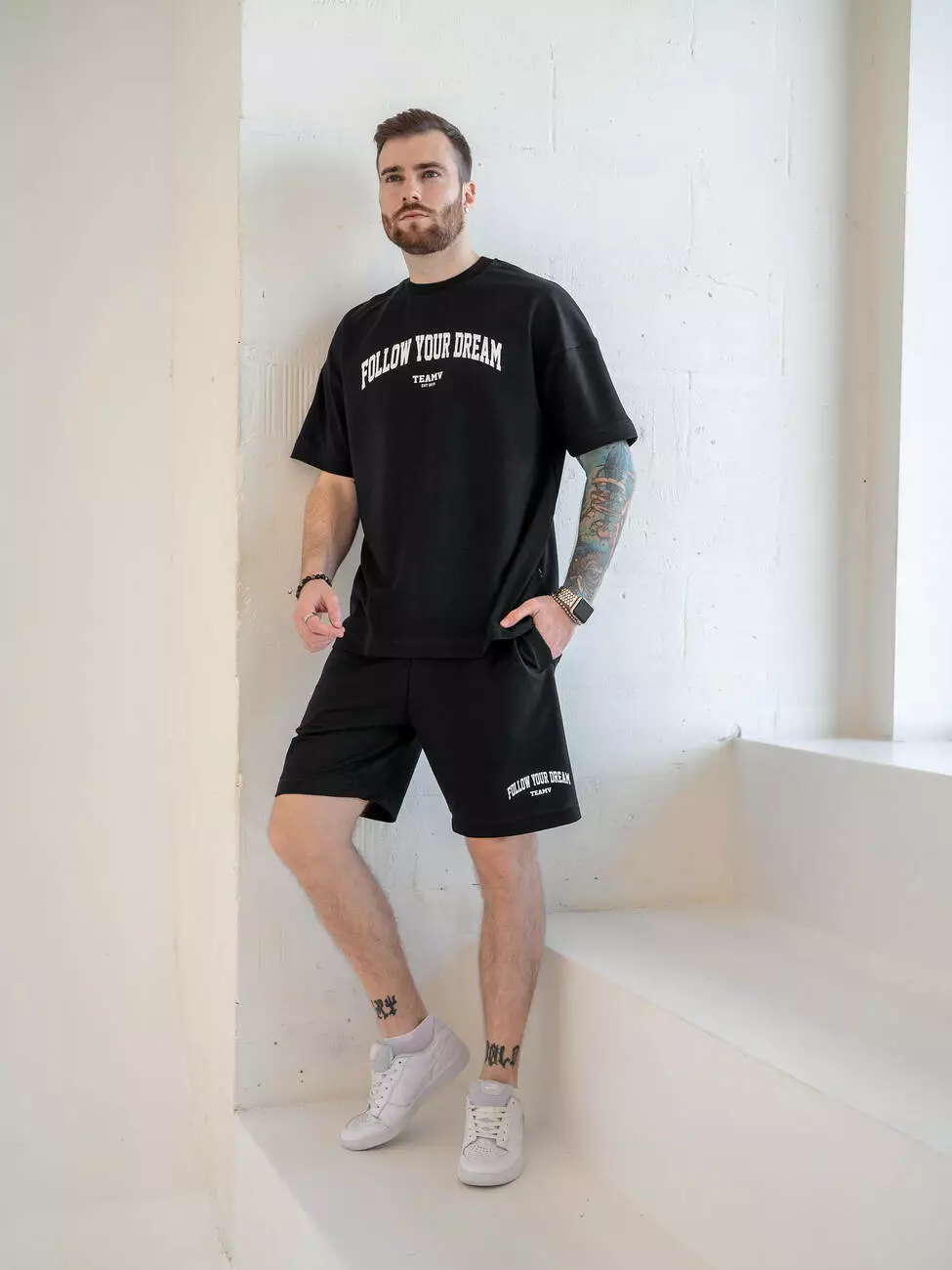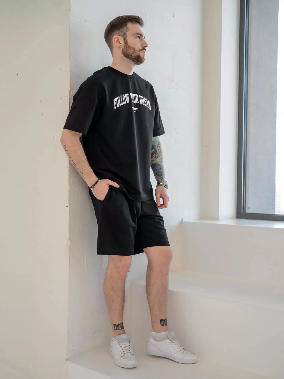 Мужской костюм на лето с брендированным принтом "FOLLOW YOUR
