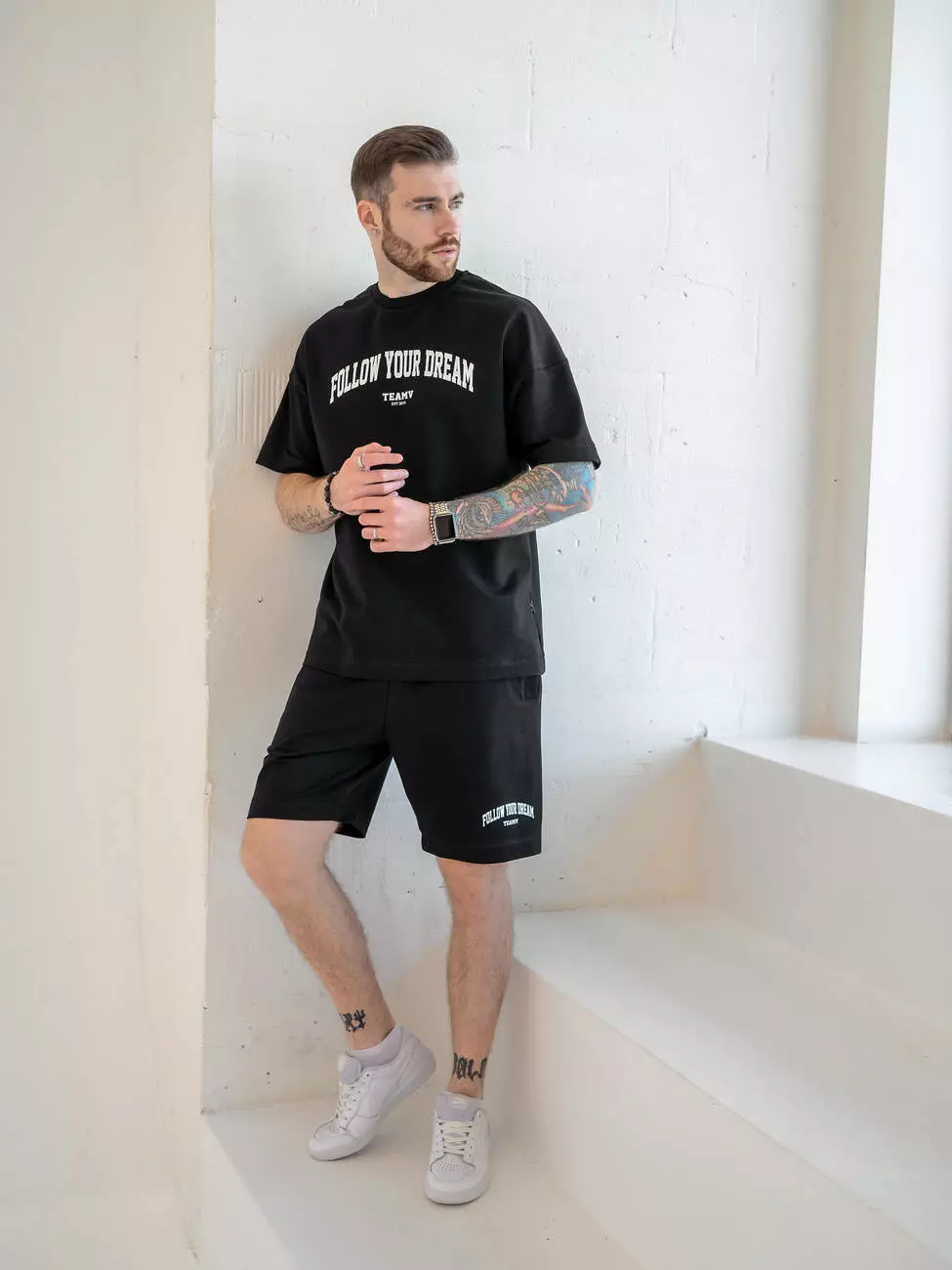 Мужской костюм на лето с брендированным принтом "FOLLOW YOUR
