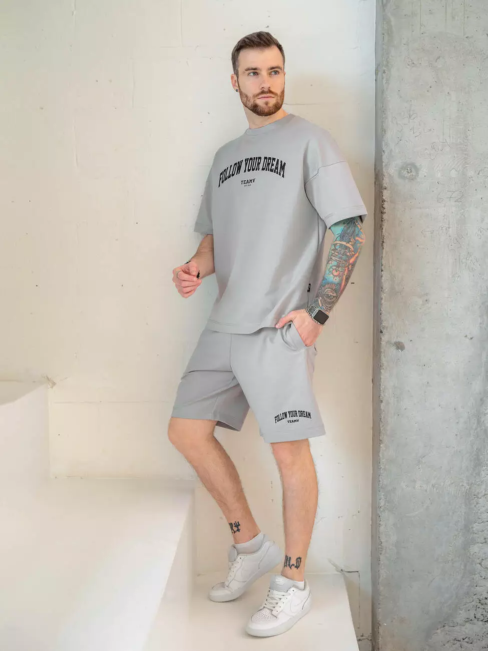 Мужской костюм на лето с брендированным принтом "FOLLOW YOUR