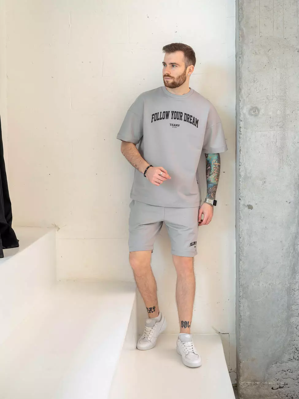Мужской костюм на лето с брендированным принтом "FOLLOW YOUR