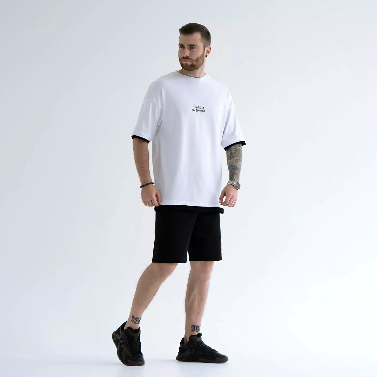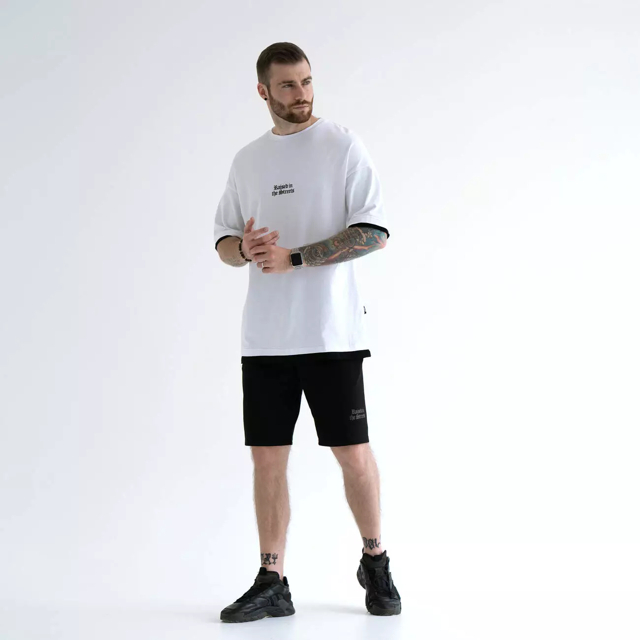 Костюм из шорт и футболки с двойным контрастным краем манжета.