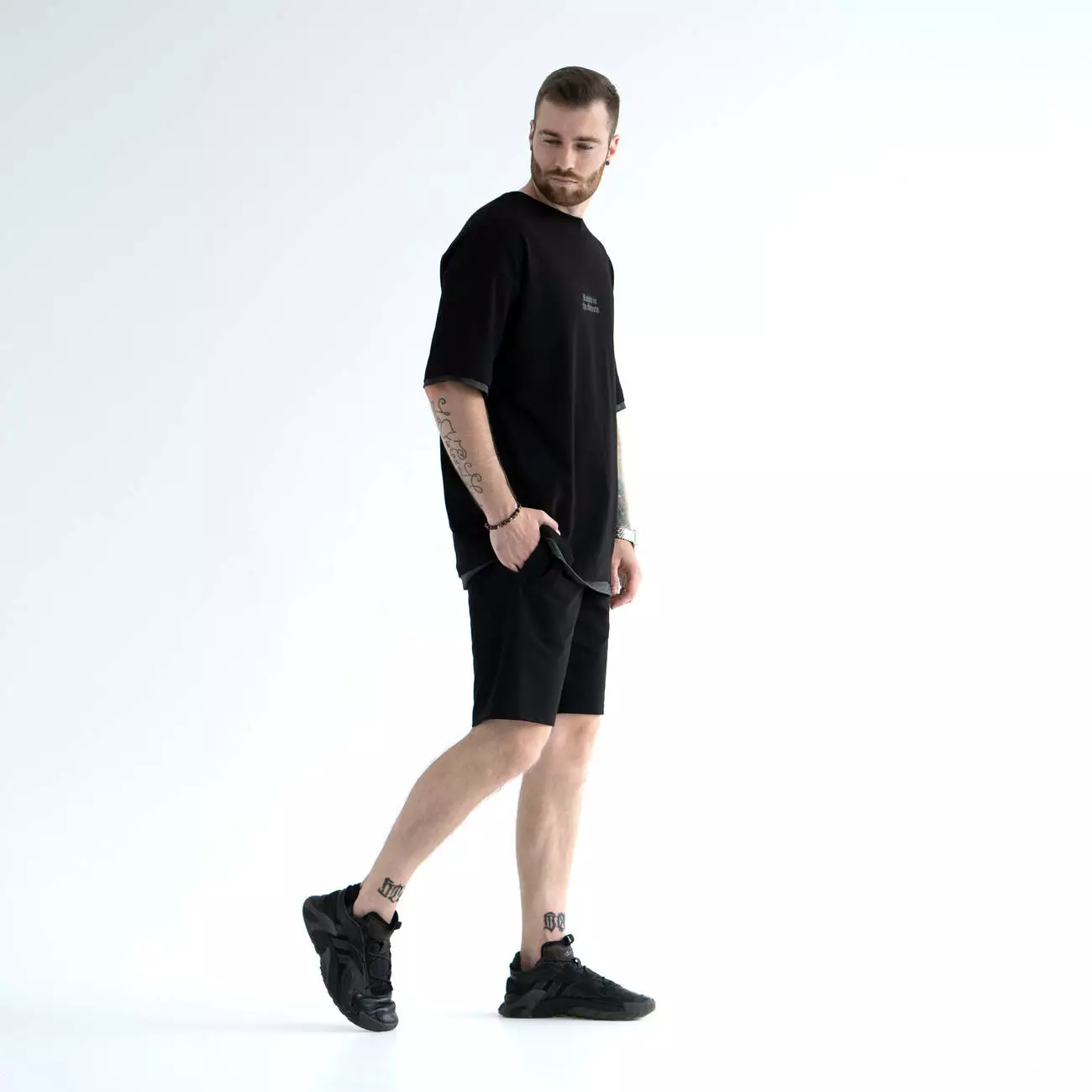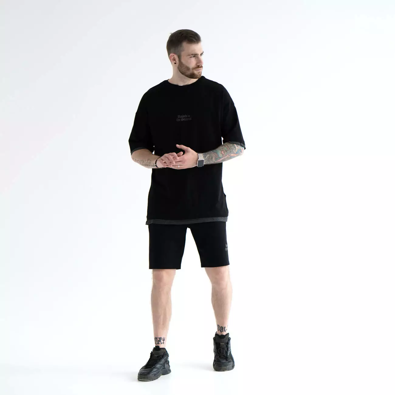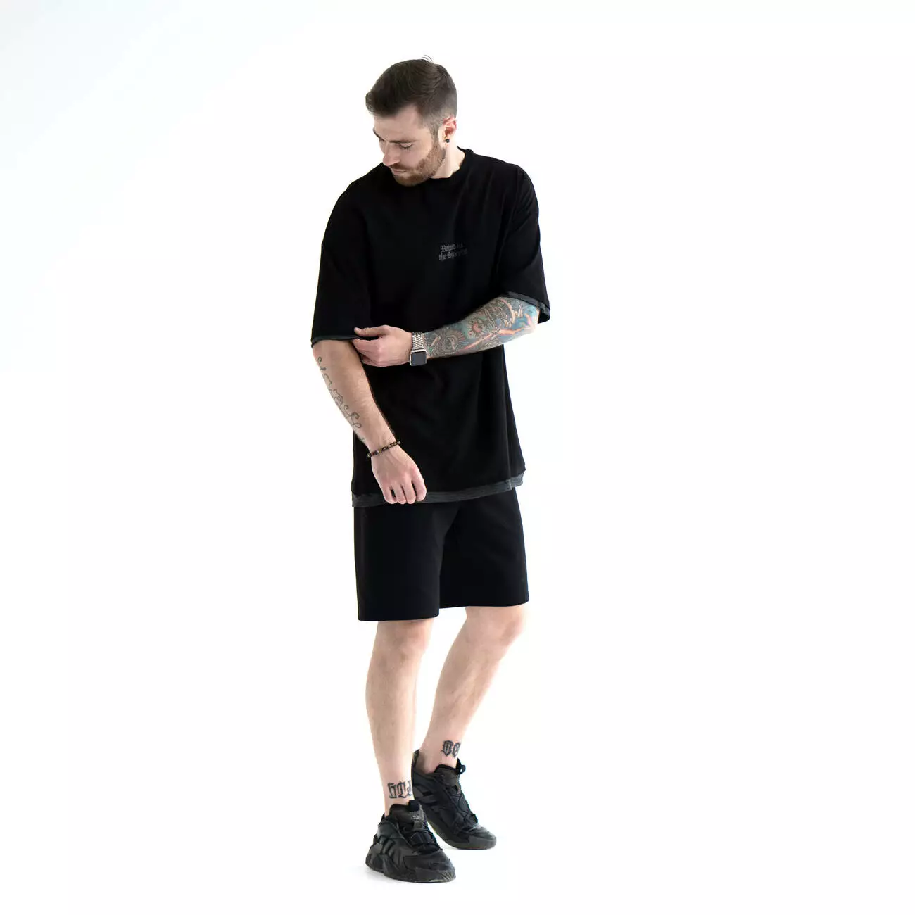 Костюм из шорт и футболки с двойным контрастным краем манжета.