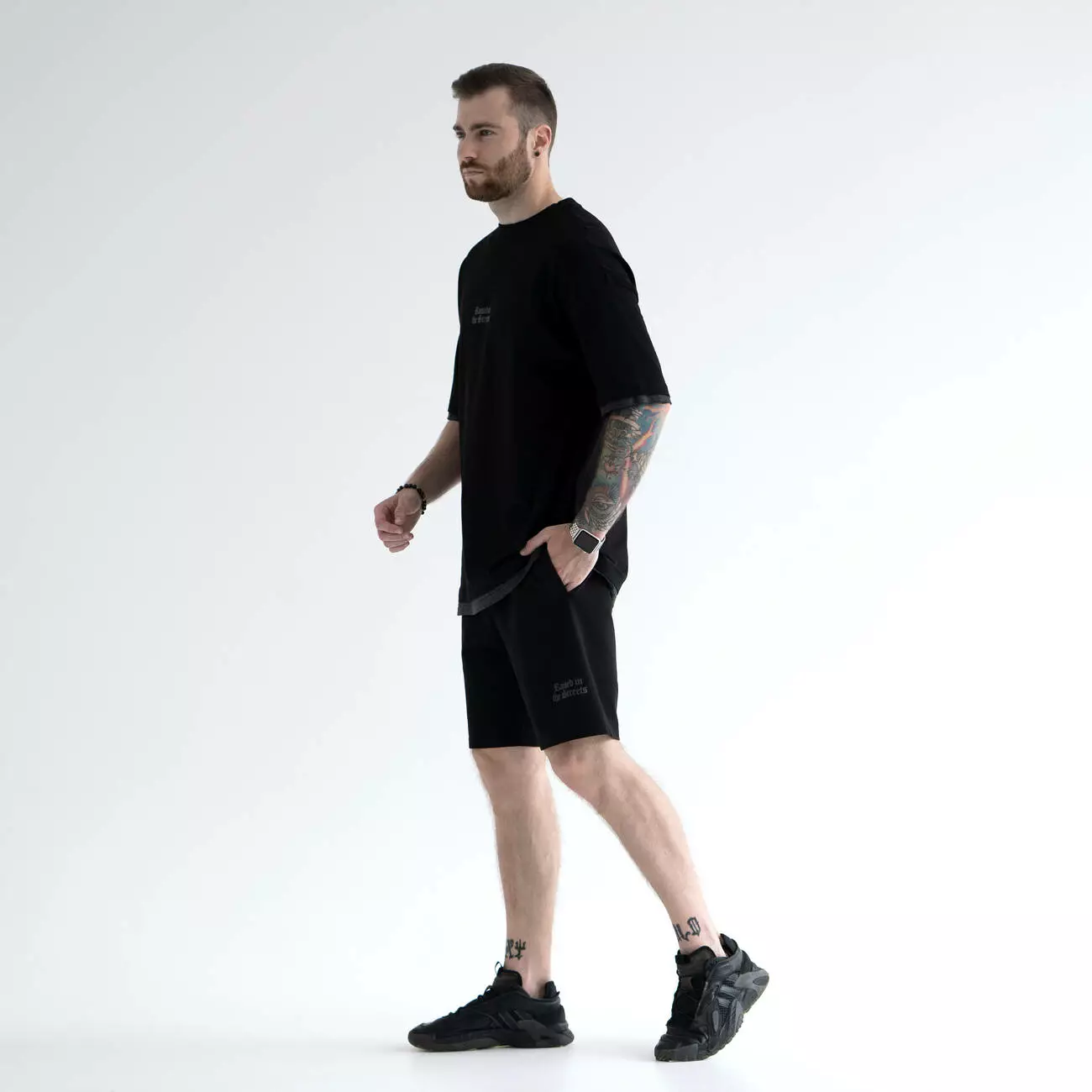 Костюм из шорт и футболки с двойным контрастным краем манжета.