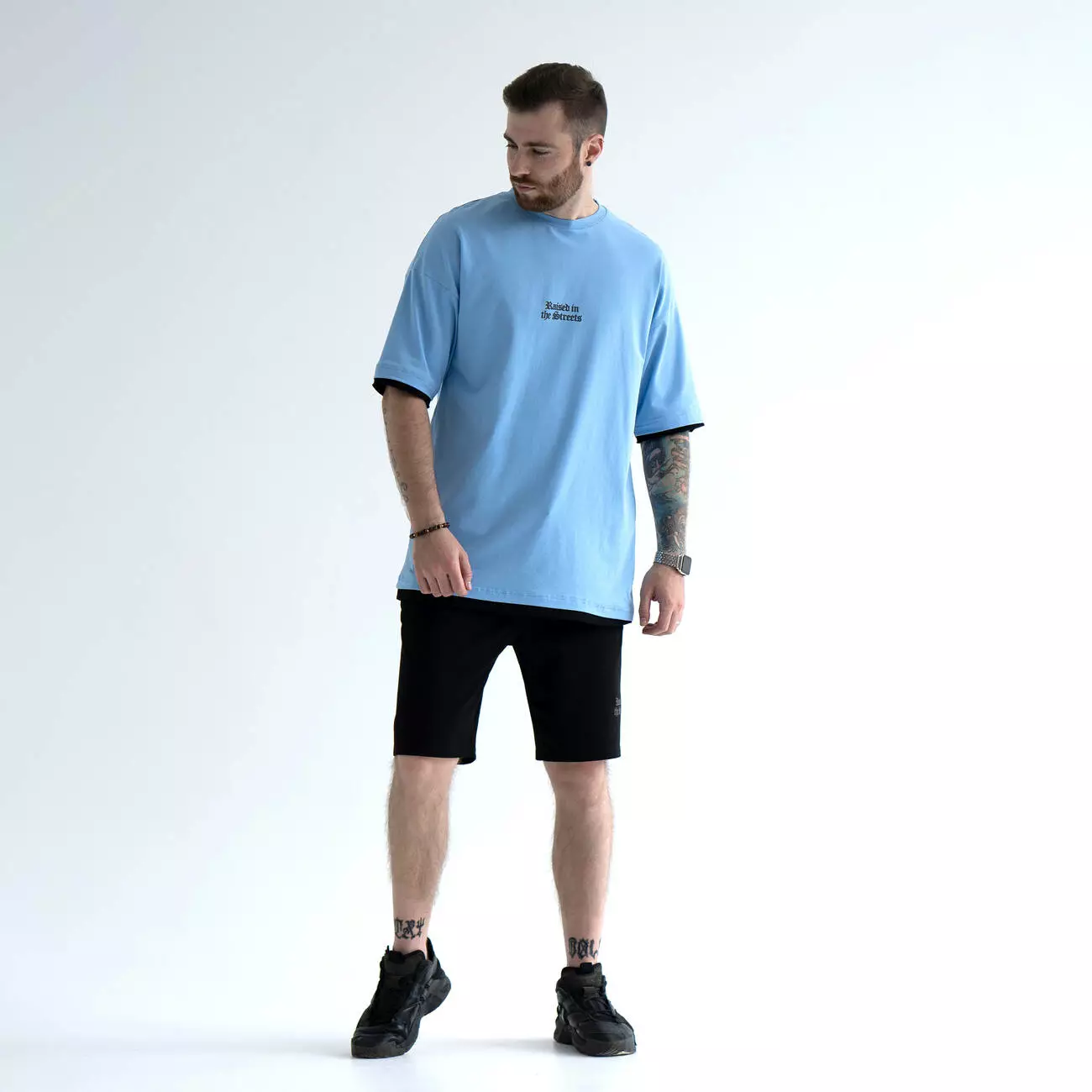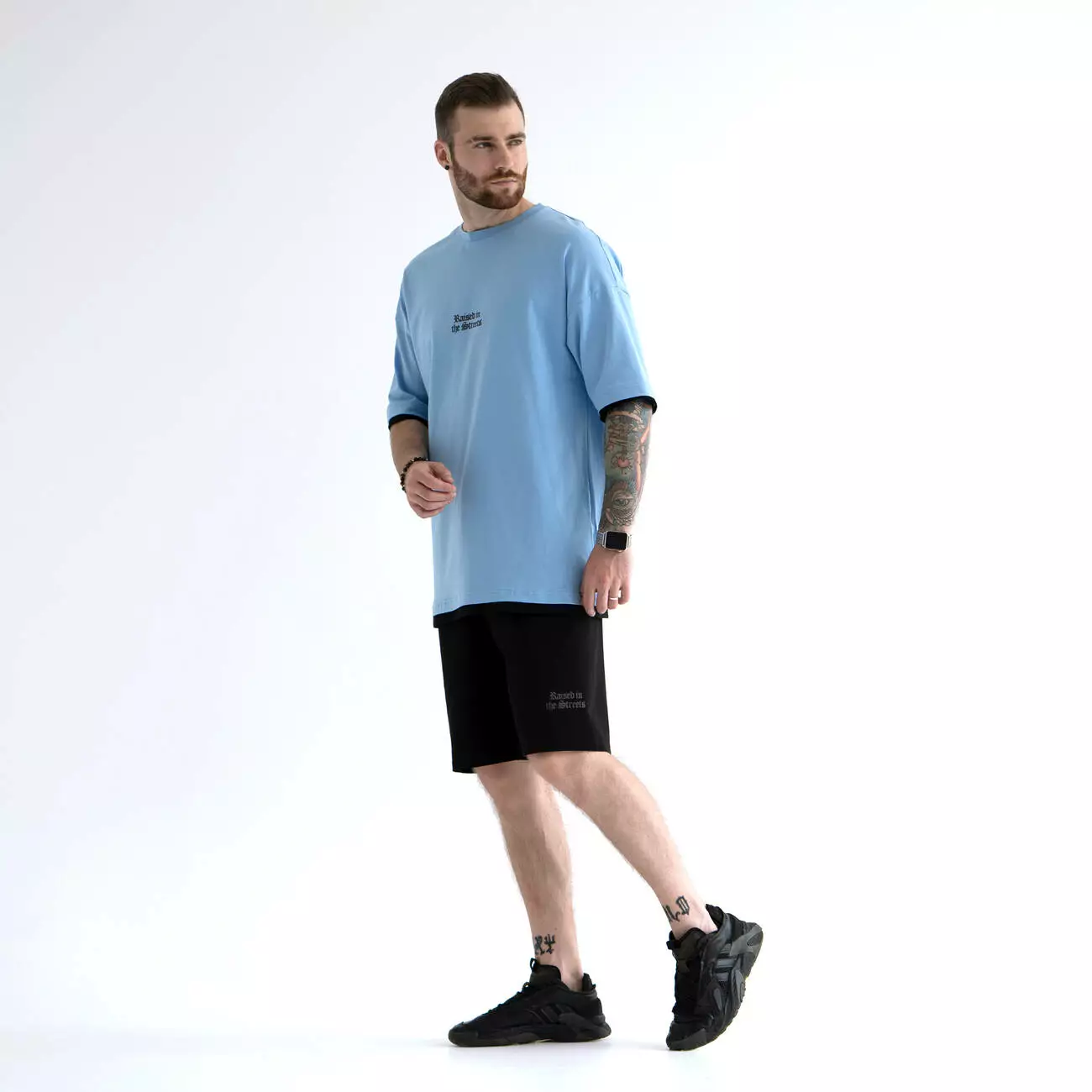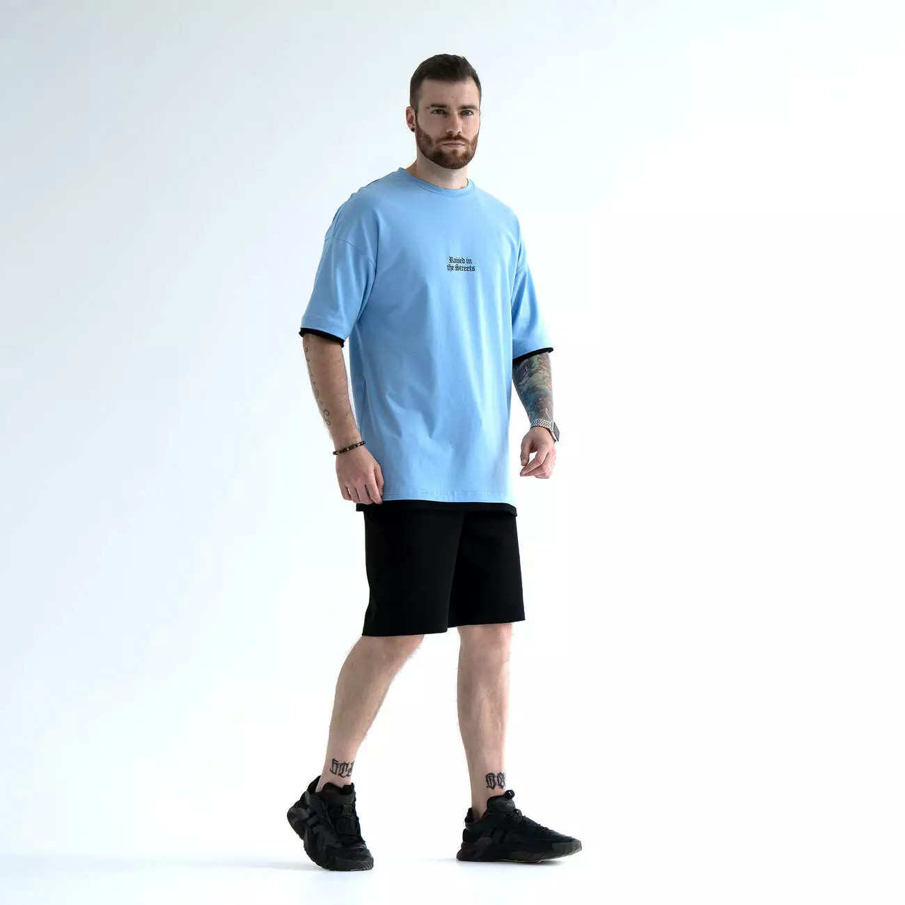 Костюм из шорт и футболки с двойным контрастным краем манжета.