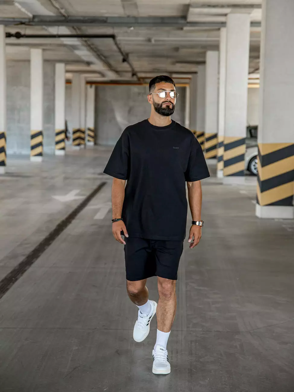 футболка с логотипом TEAMV и свободными шортами с эластичным поясом