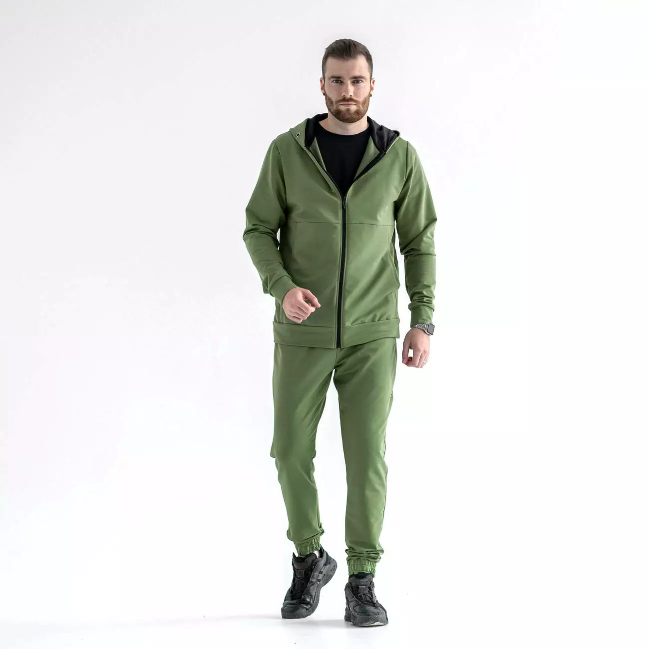 Демисезонный спортивный костюм из кофты на змейке и спортивных