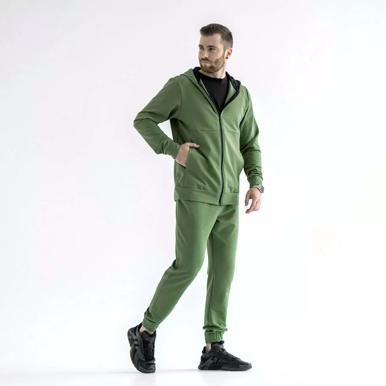 Демисезонный спортивный костюм из кофты на змейке и спортивных