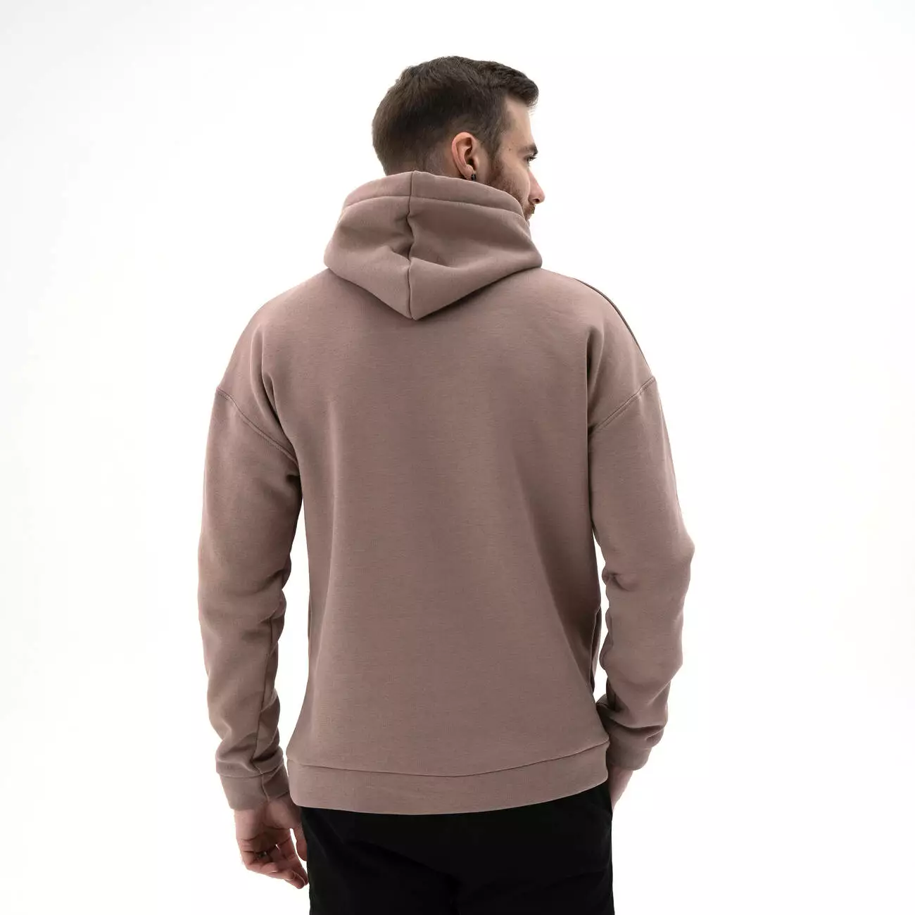 Мужской теплый базовый худи больших размеров со спущенным плечом. Комфортный однотонный худи с карманом-кенгуру.