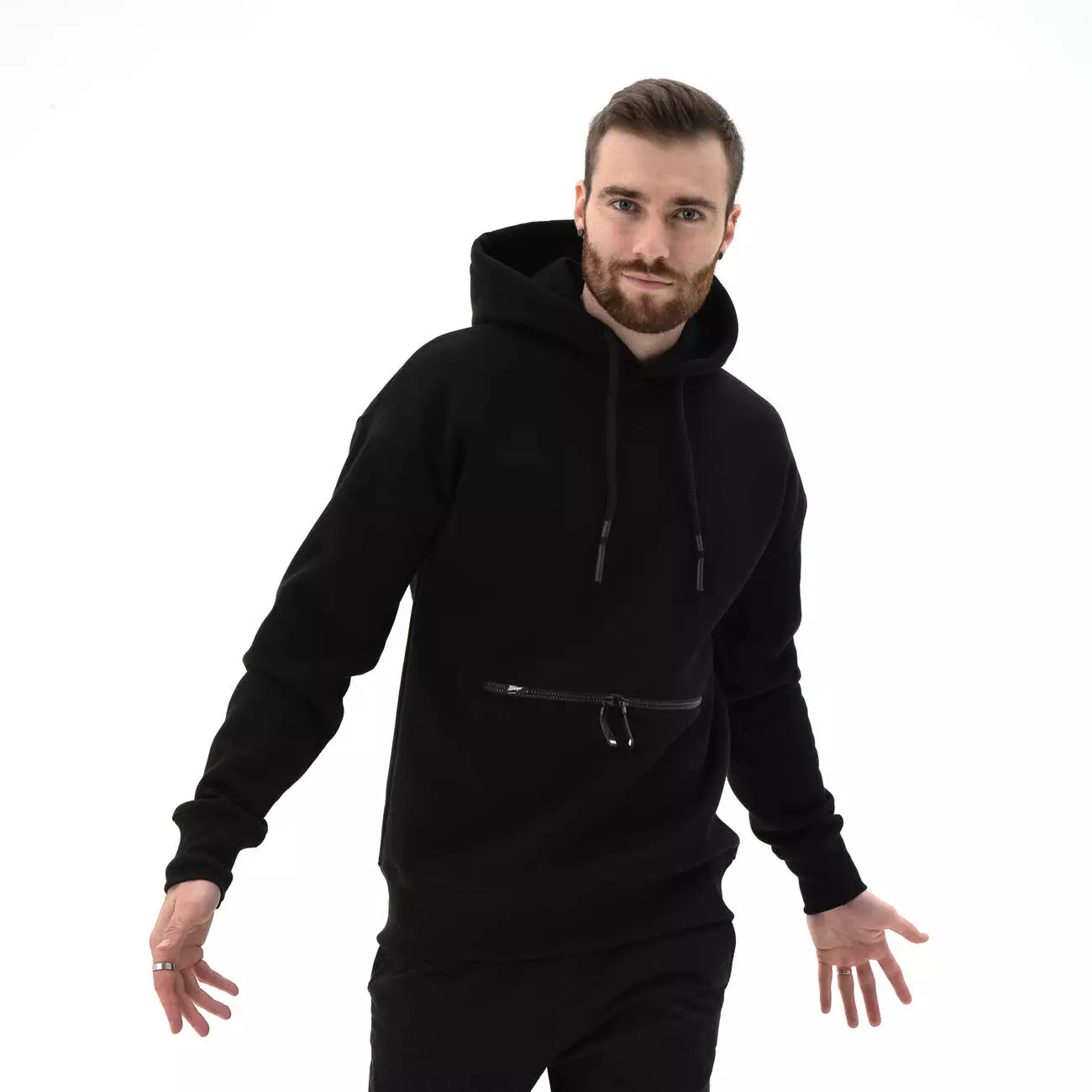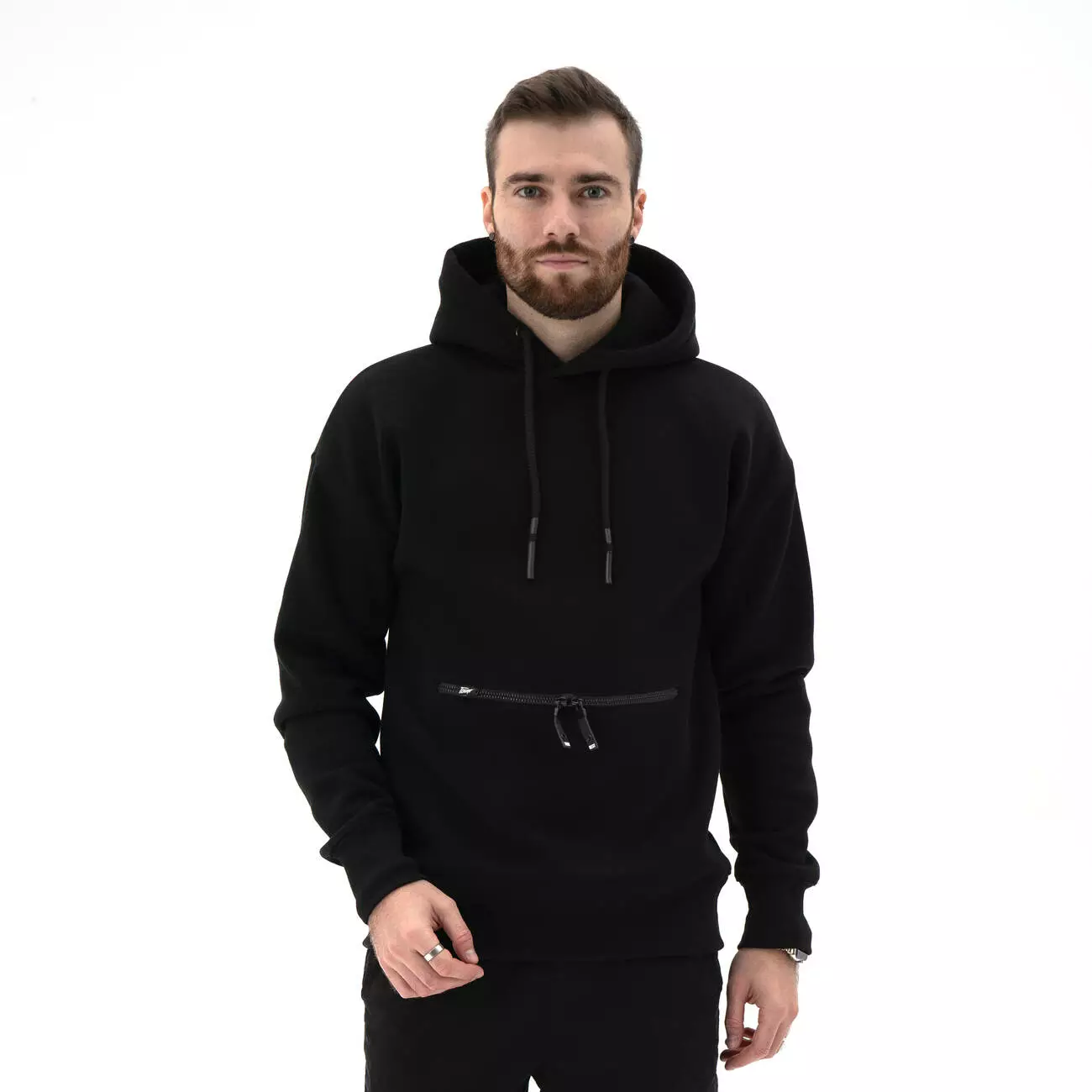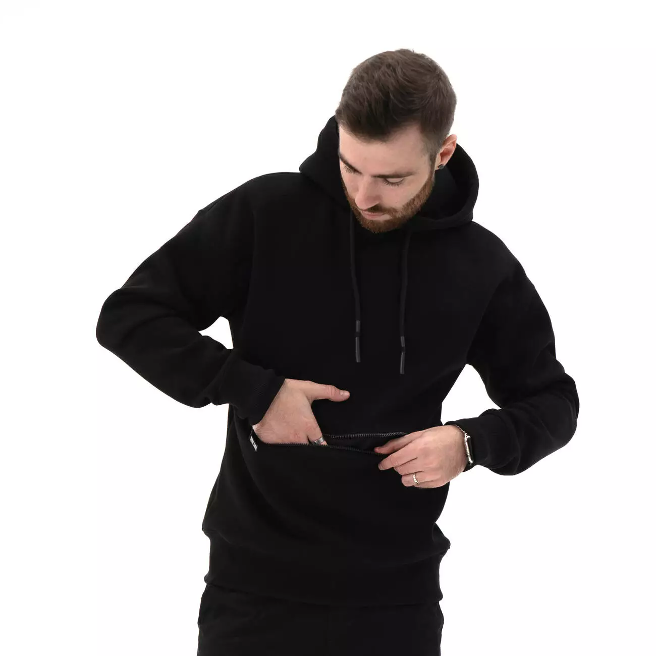 Мужской теплый худи с глубоким карманом на змейке и капюшоном.