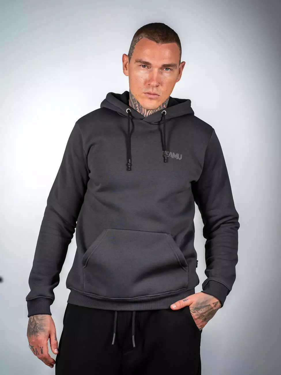 Мужской теплый худи с логотипом в базовом классическом крое. Пояс и