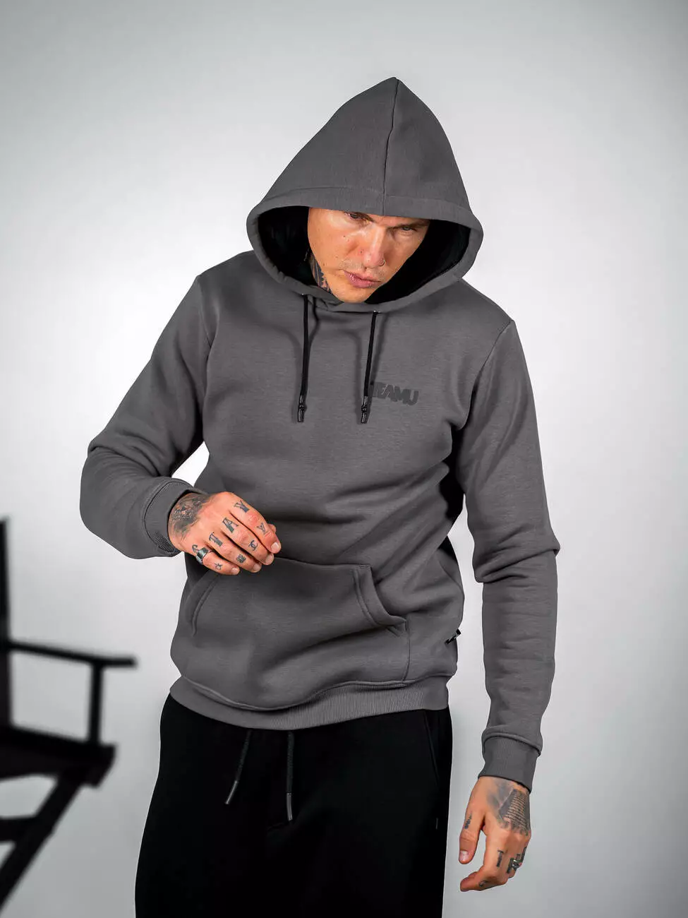 Мужской теплый худи с логотипом в базовом классическом крое. Пояс и