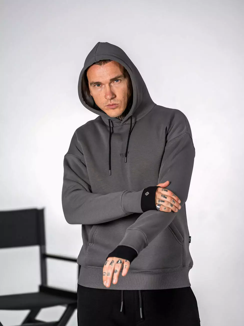 Мужской теплый базовый худи с логотипом, контрасnным двойным