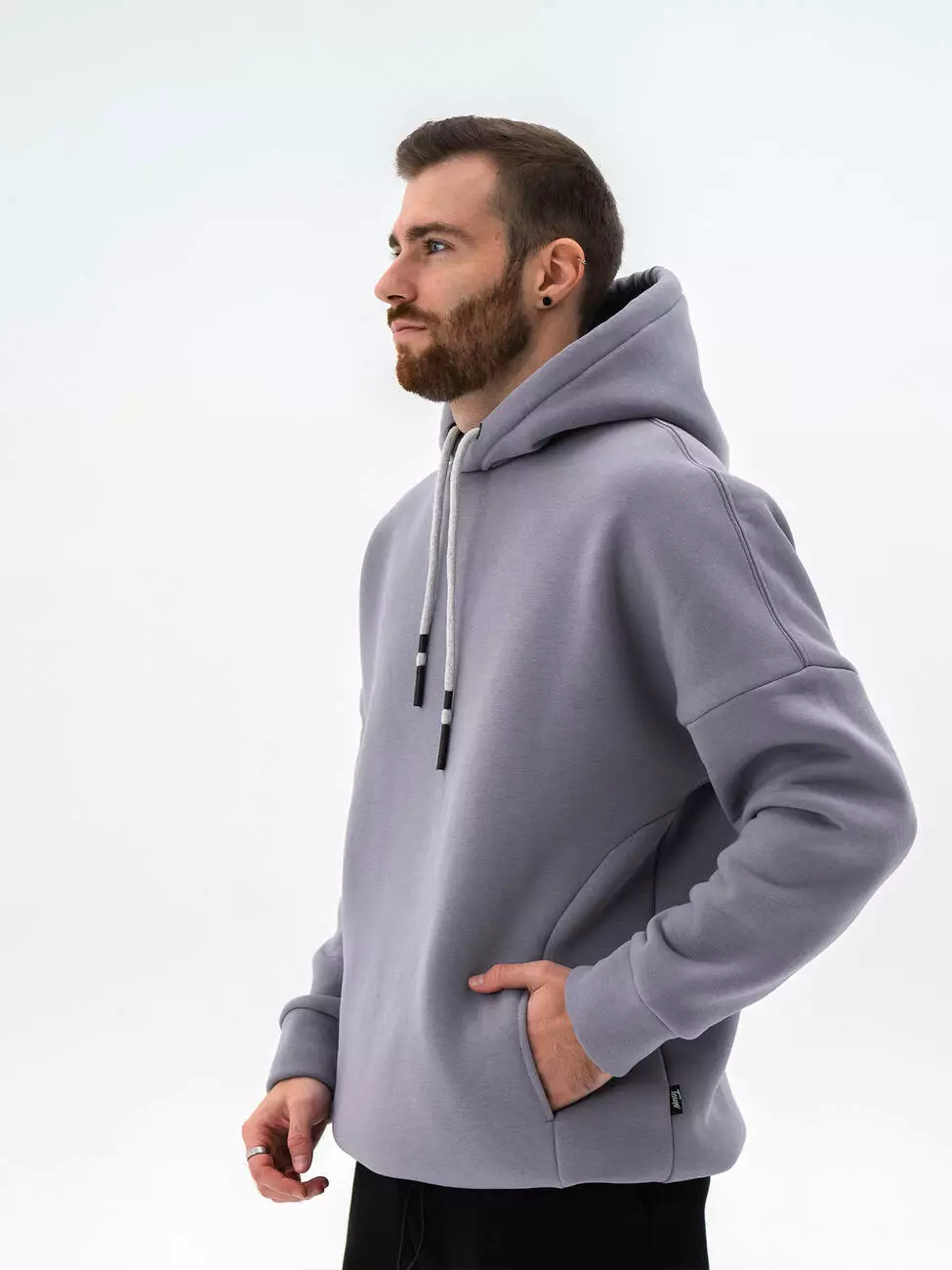 Мужской теплый худи свободного кроя - oversize. Худи со скрытым