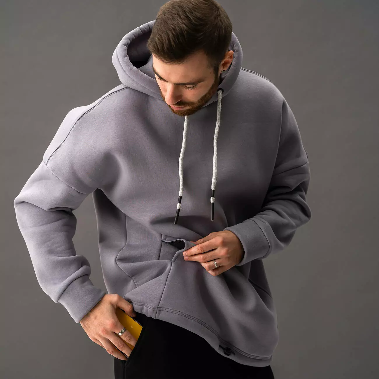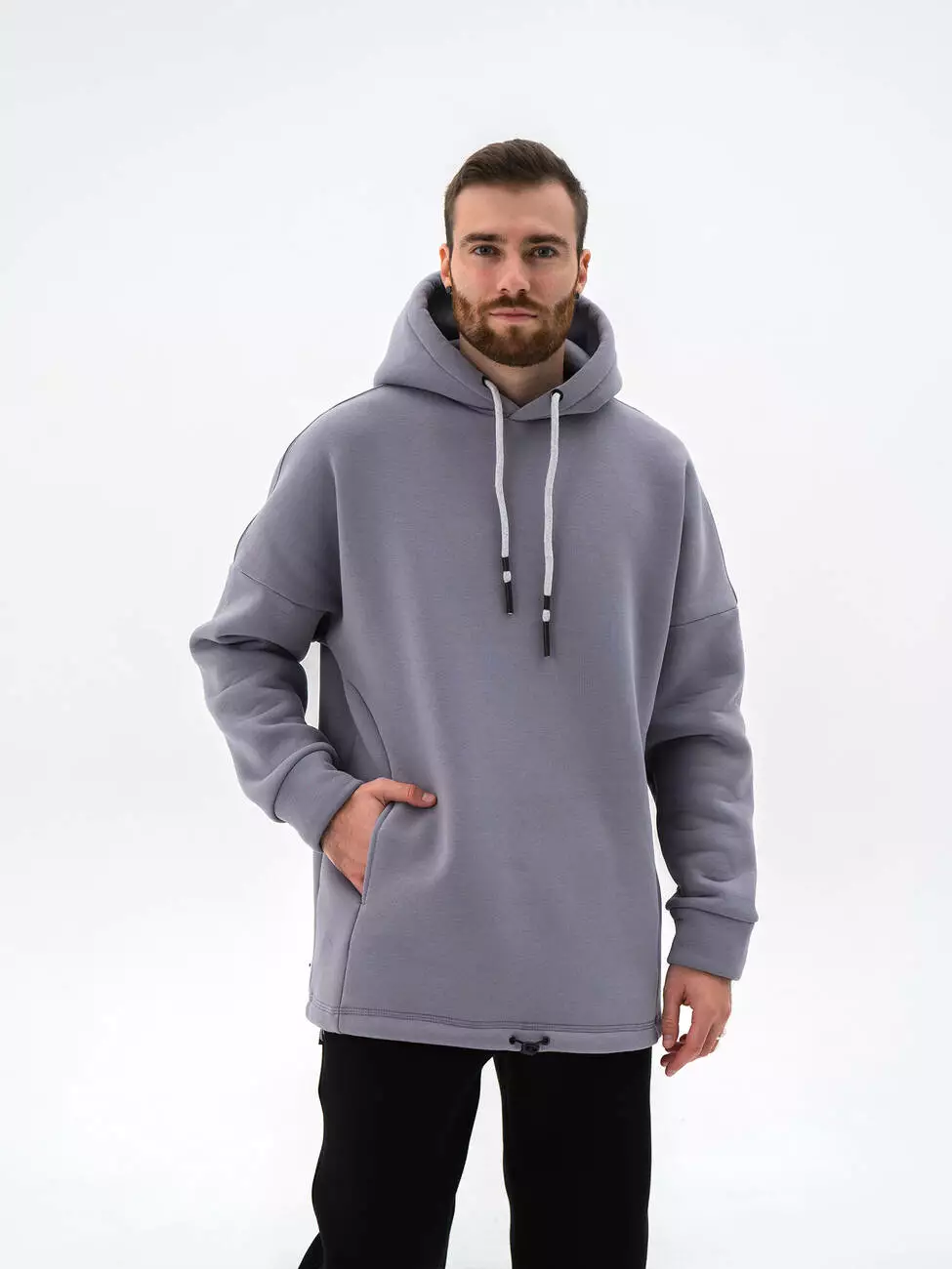 Мужской теплый худи свободного кроя - oversize. Худи со скрытым