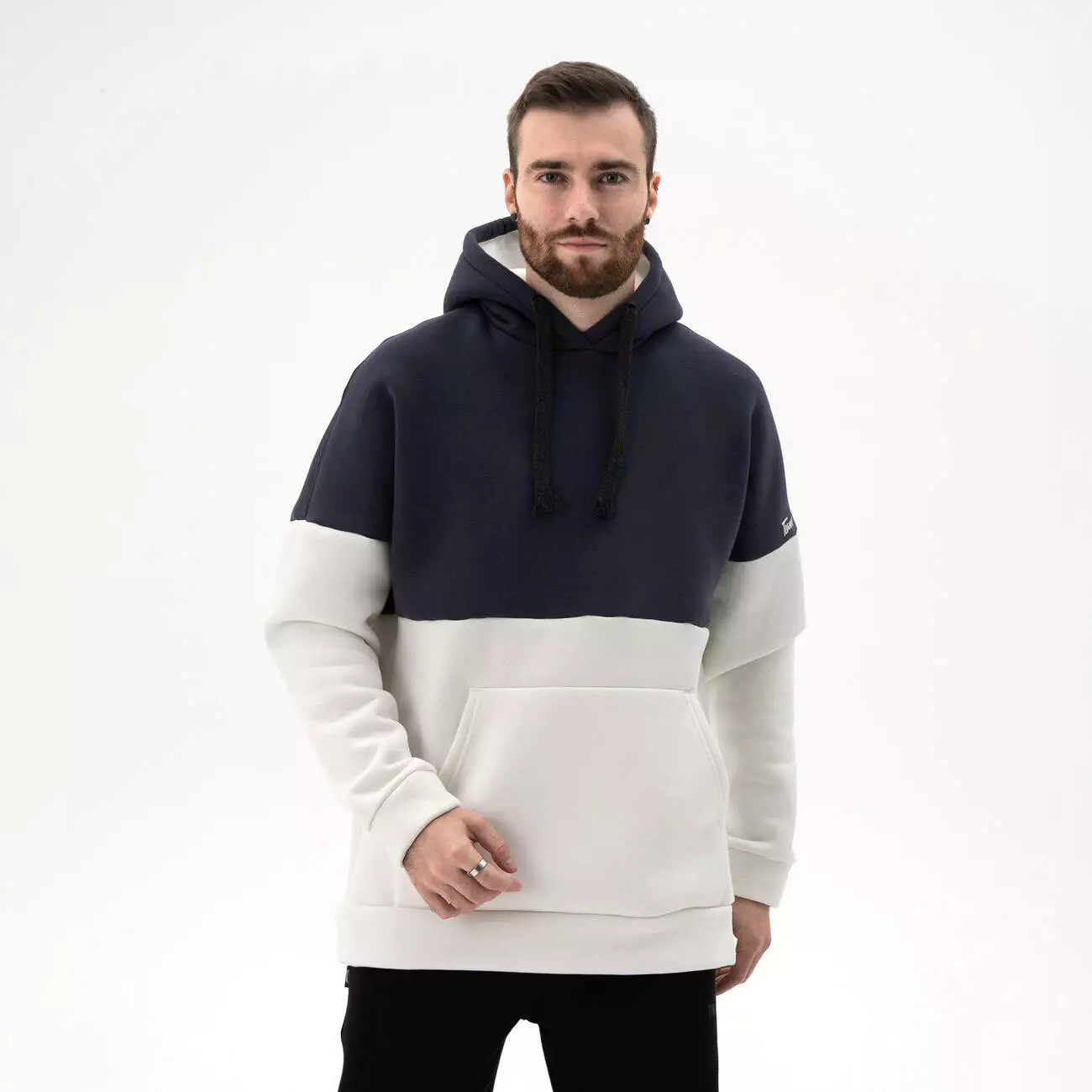 Мужской теплый худи свободного кроя - oversize. Худи с контрастным