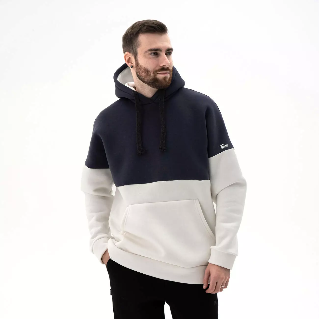 Мужской теплый худи свободного кроя - oversize. Худи с контрастным