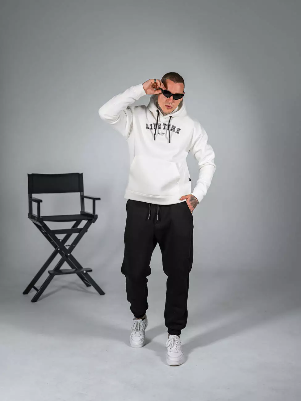 Мужской зимний худи с объёмным принтом LIFETIME выполнен из теплой