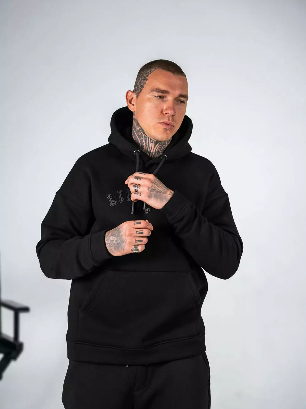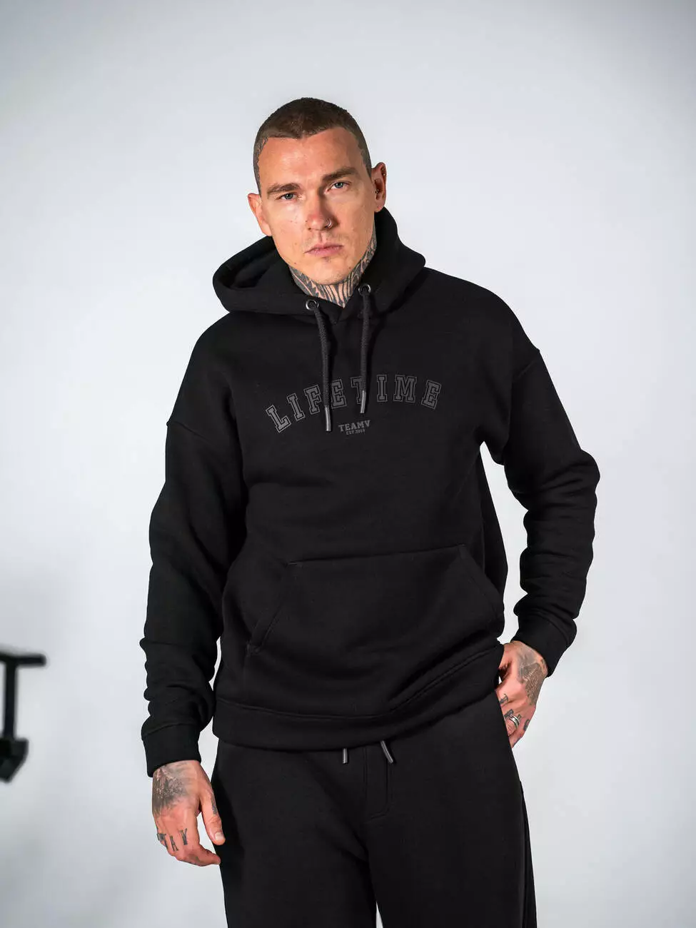 Мужской зимний худи с объёмным принтом LIFETIME выполнен из теплой