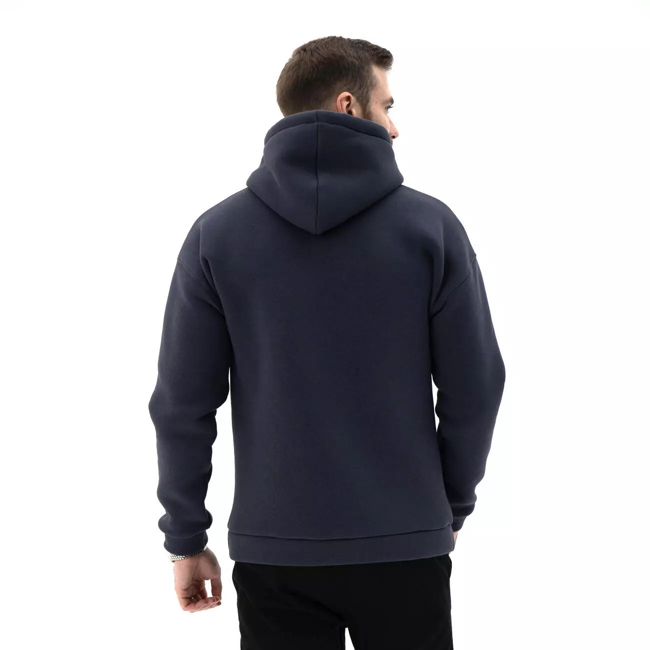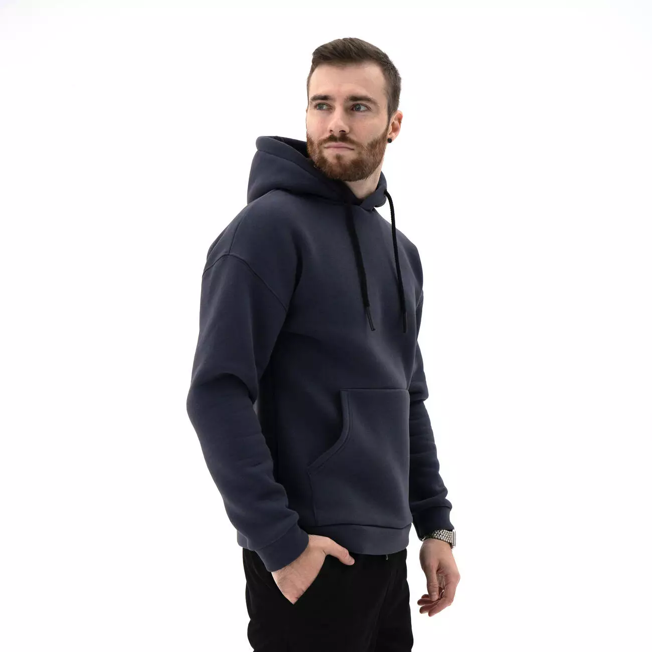 Мужской теплый базовый худи со спущенным плечом. Комфортный однотонный худи с карманом-кенгуру.