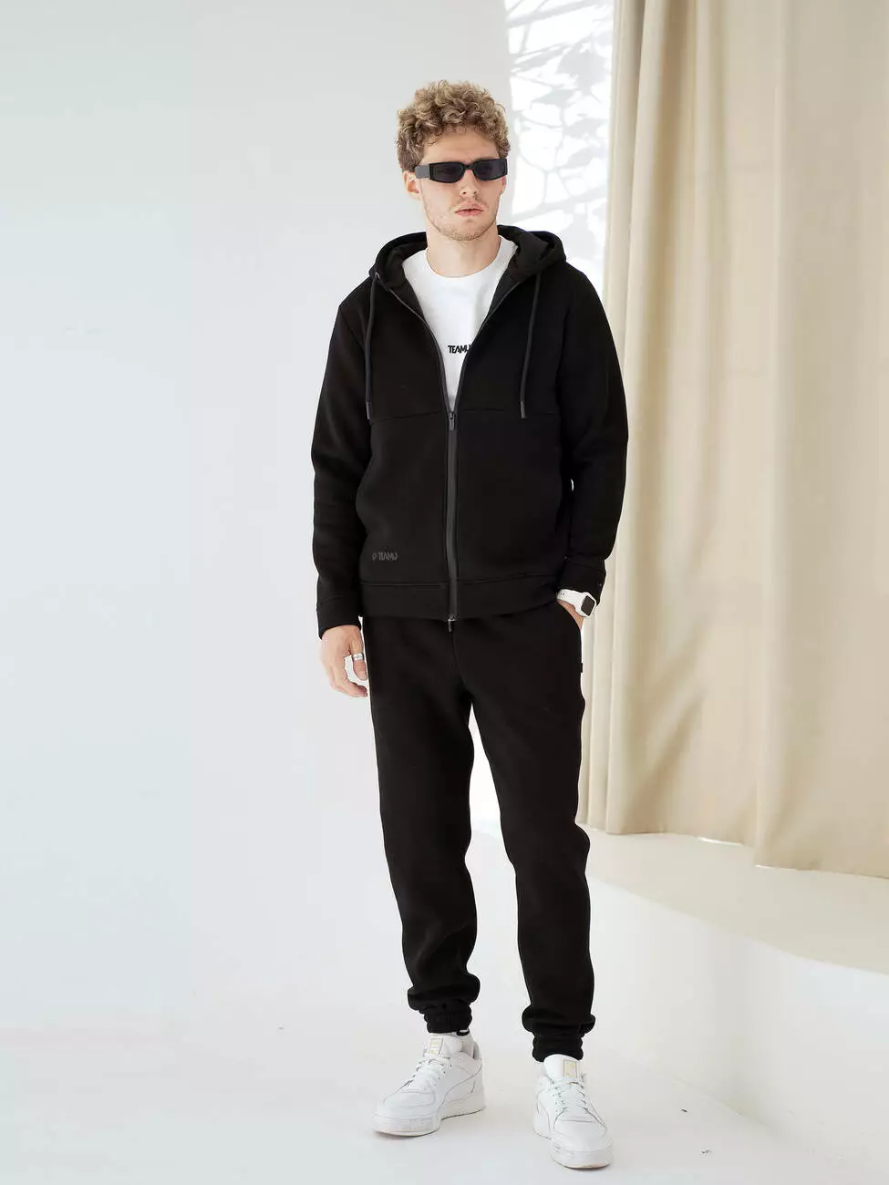 комфортная кофта на змейке, с боковым карманами и капюшоном.