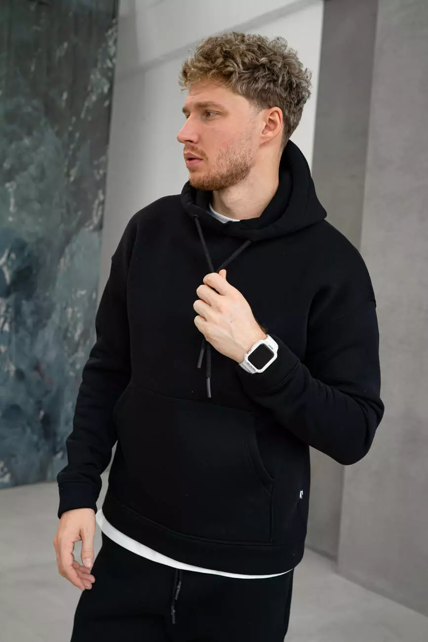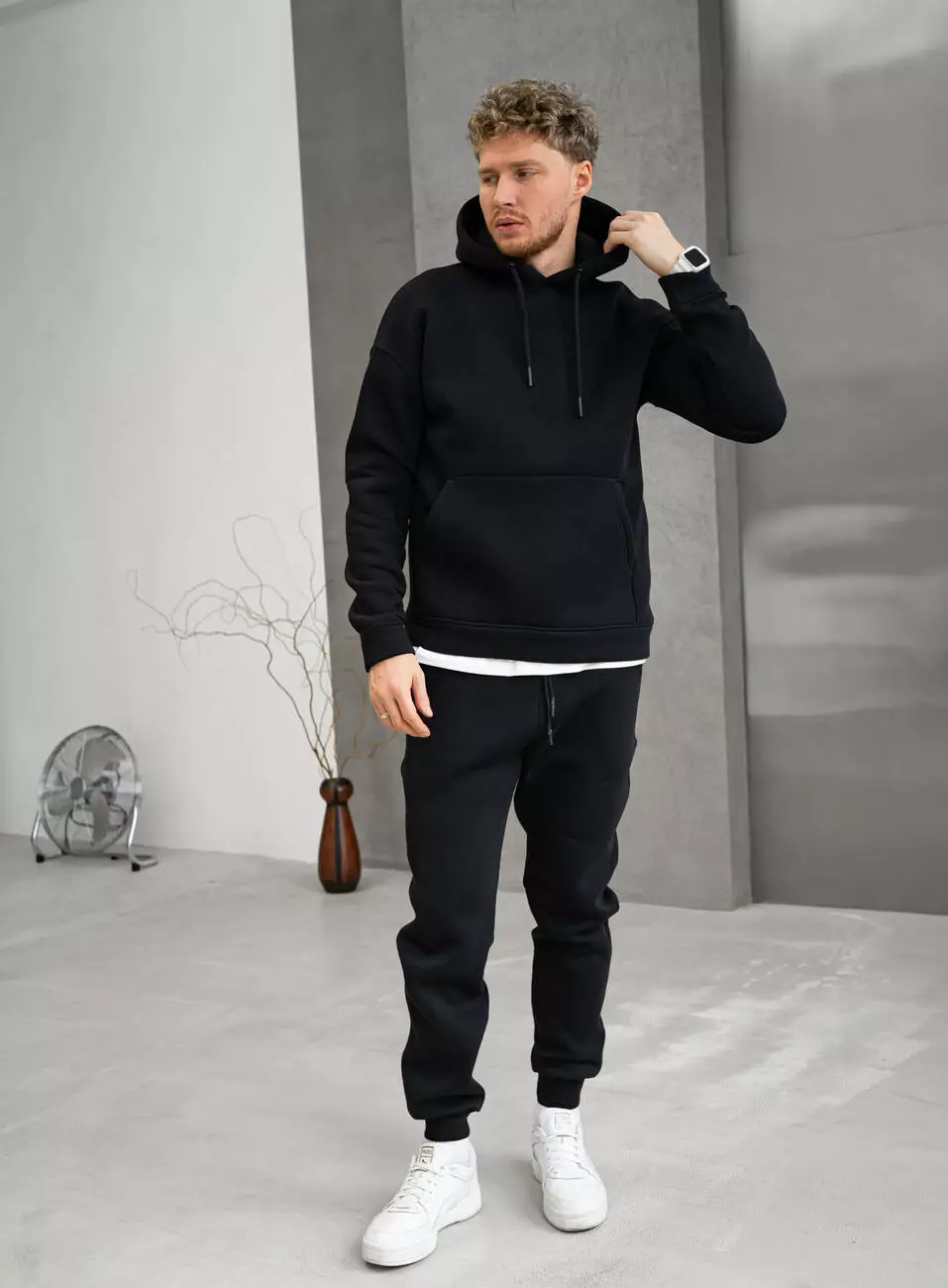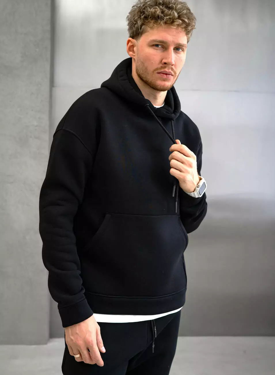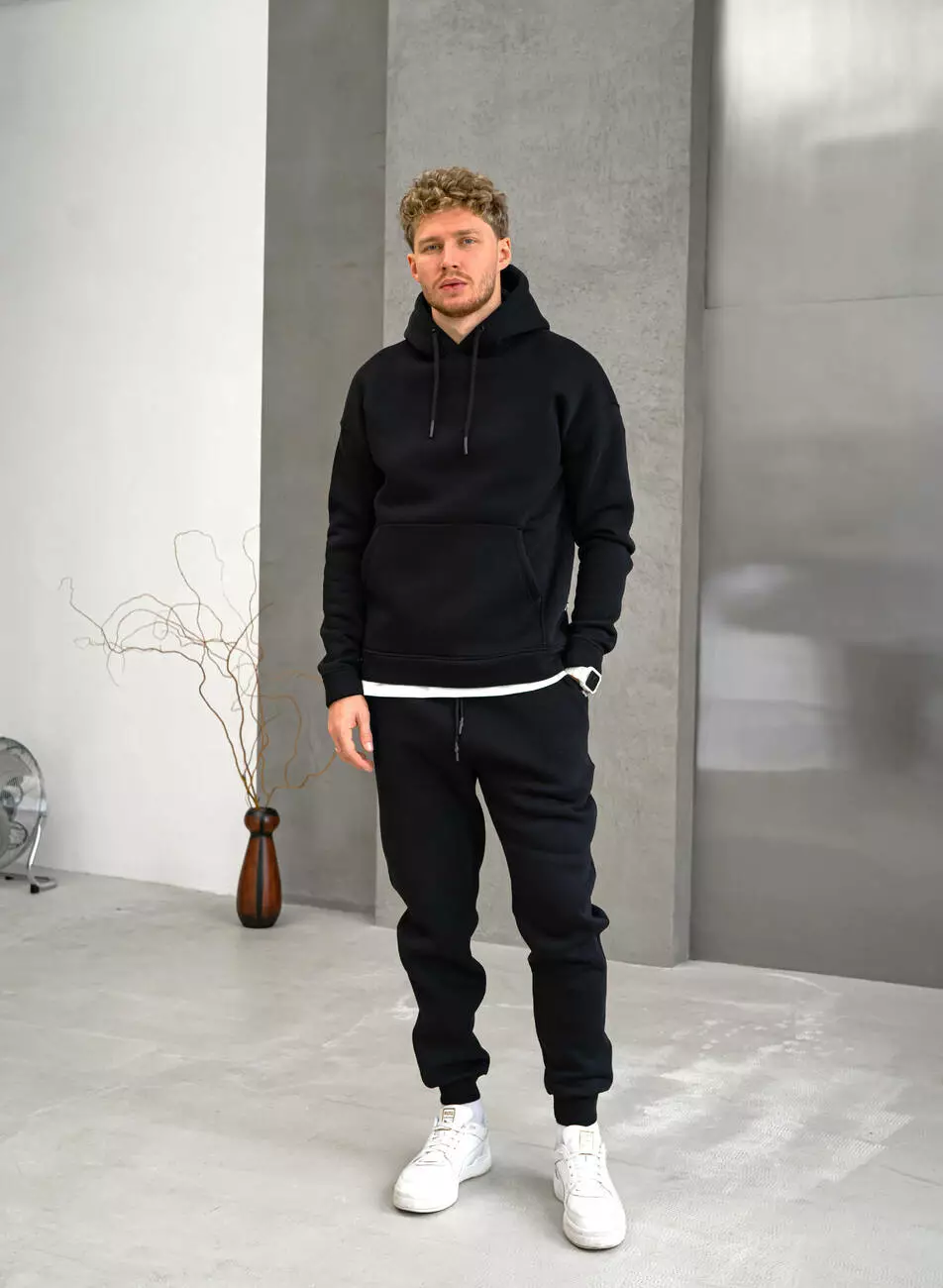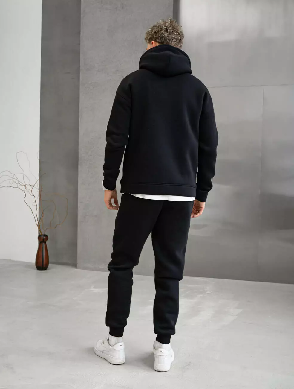 Мужской теплый спортивный однотонный костюм. Худи с капюшоном и