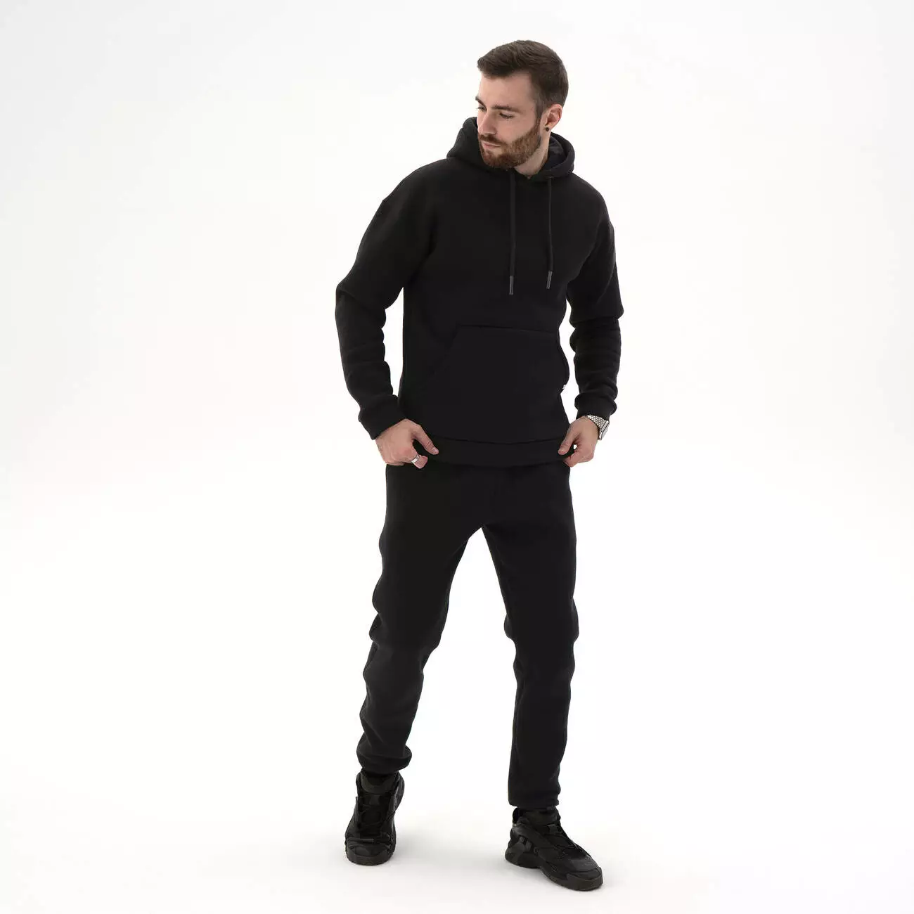 карманом-кенгуру. Штаны с поясом на резинке и шнурком, с манжетами
