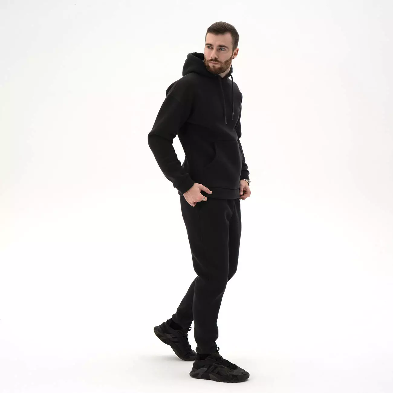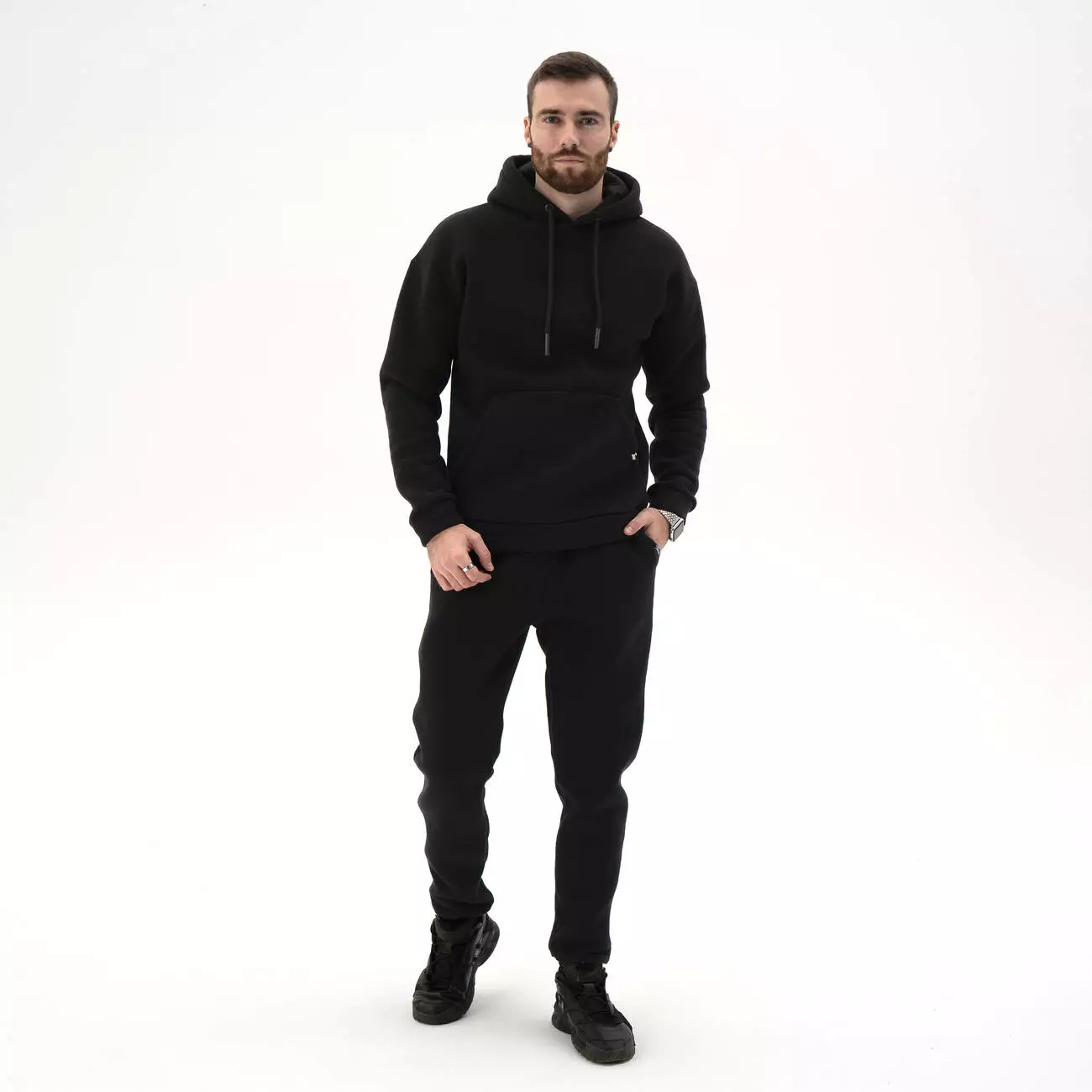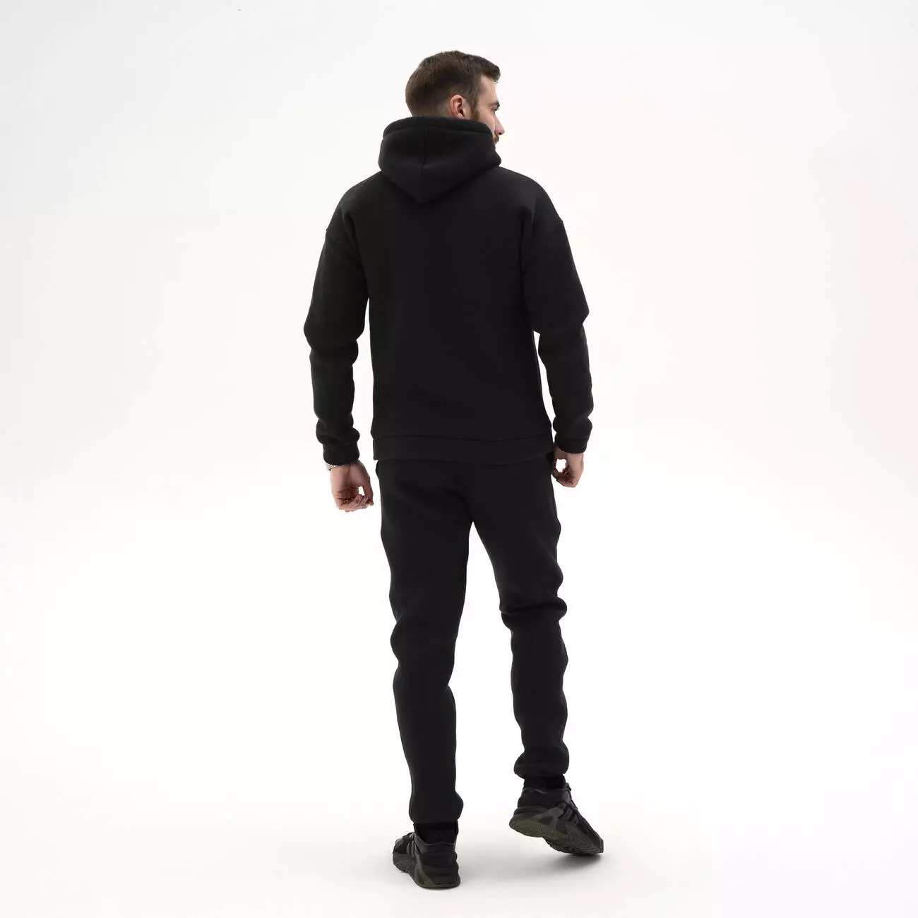 Мужской теплый спортивный однотонный костюм. Худи с капюшоном и