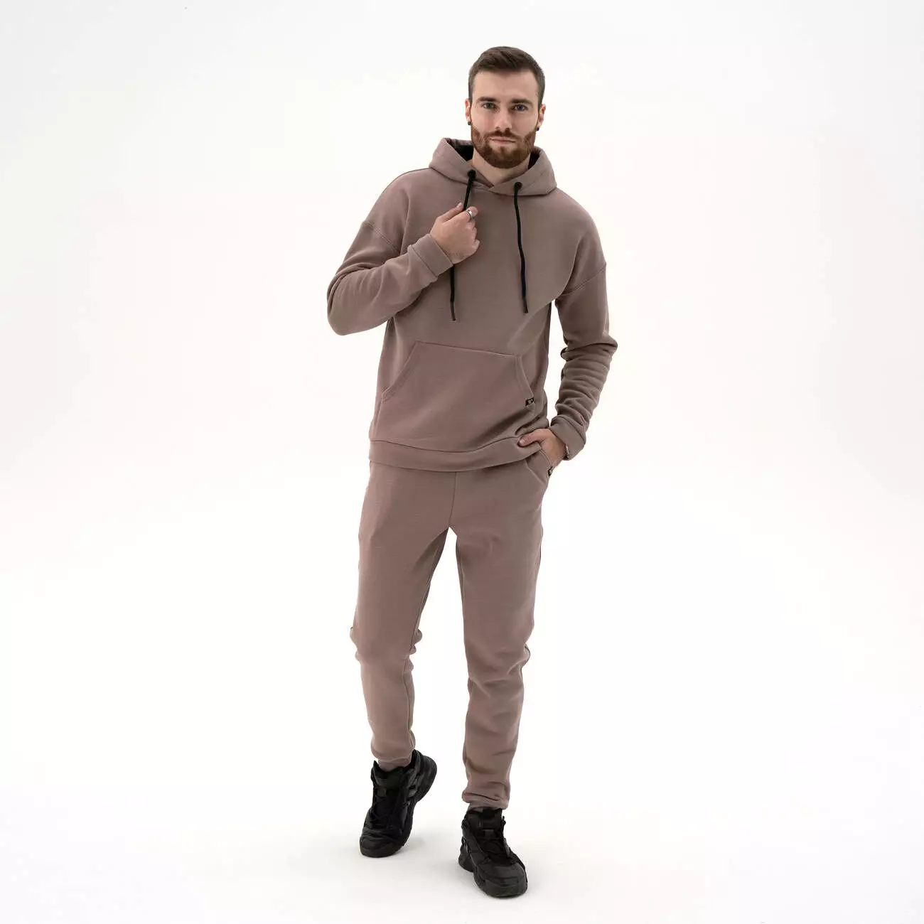 Мужской теплый спортивный однотонный костюм. Худи с капюшоном и