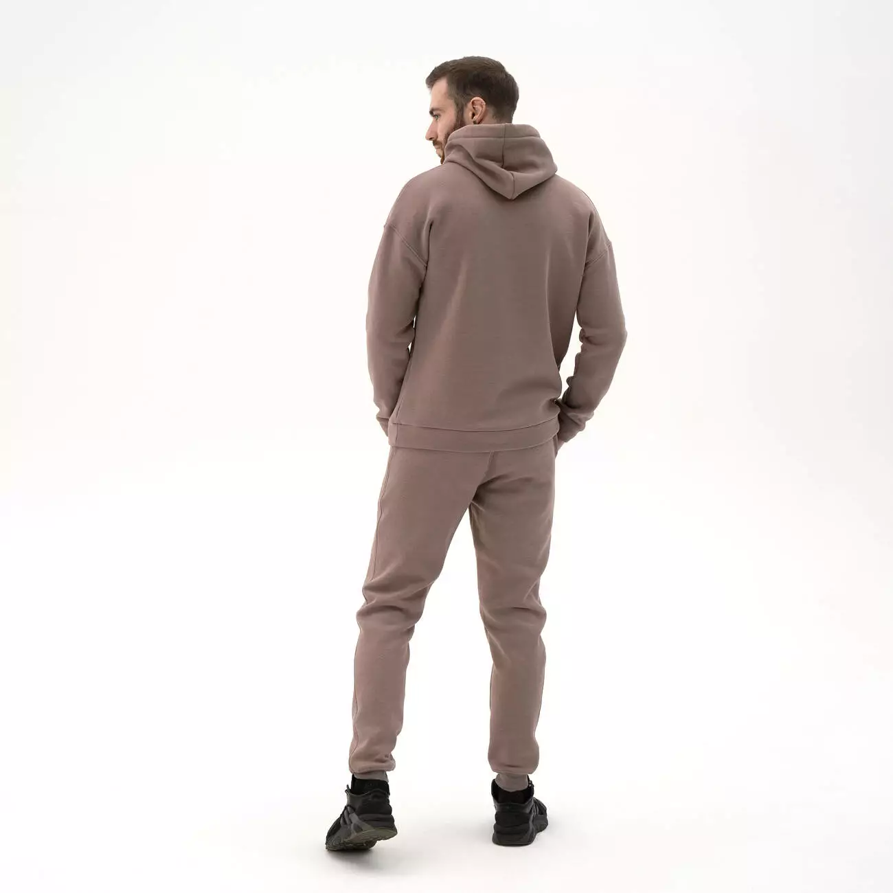 Мужской теплый спортивный однотонный костюм. Худи с капюшоном и