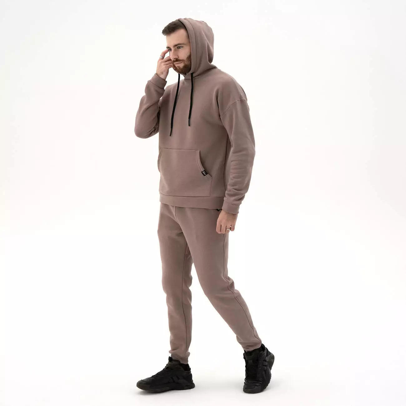 карманом-кенгуру. Штаны с поясом на резинке и шнурком, с манжетами