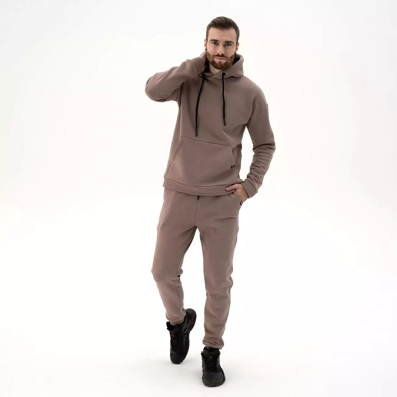карманом-кенгуру. Штаны с поясом на резинке и шнурком, с манжетами