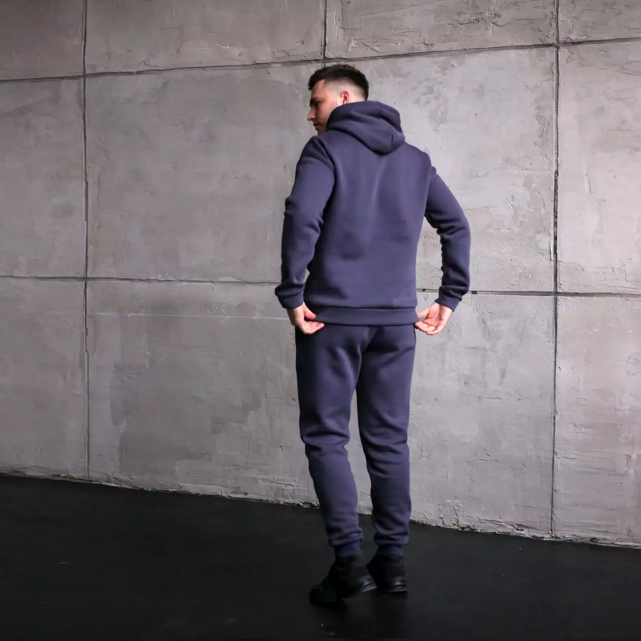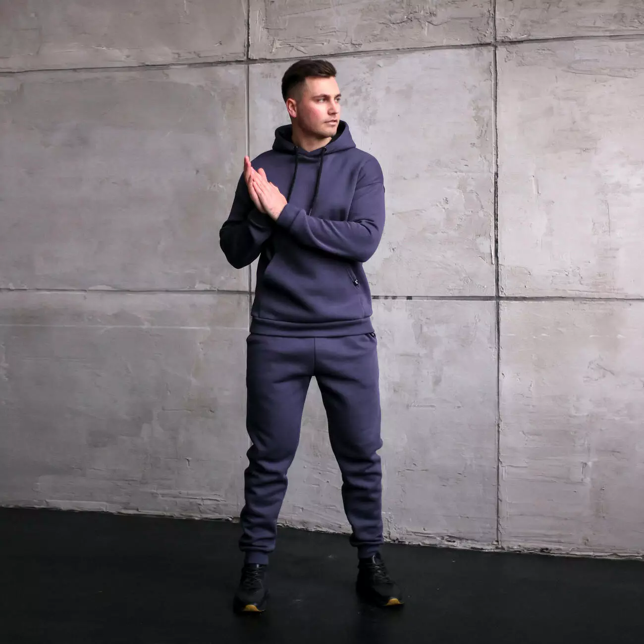 Мужской теплый спортивный однотонный костюм. Худи с капюшоном и