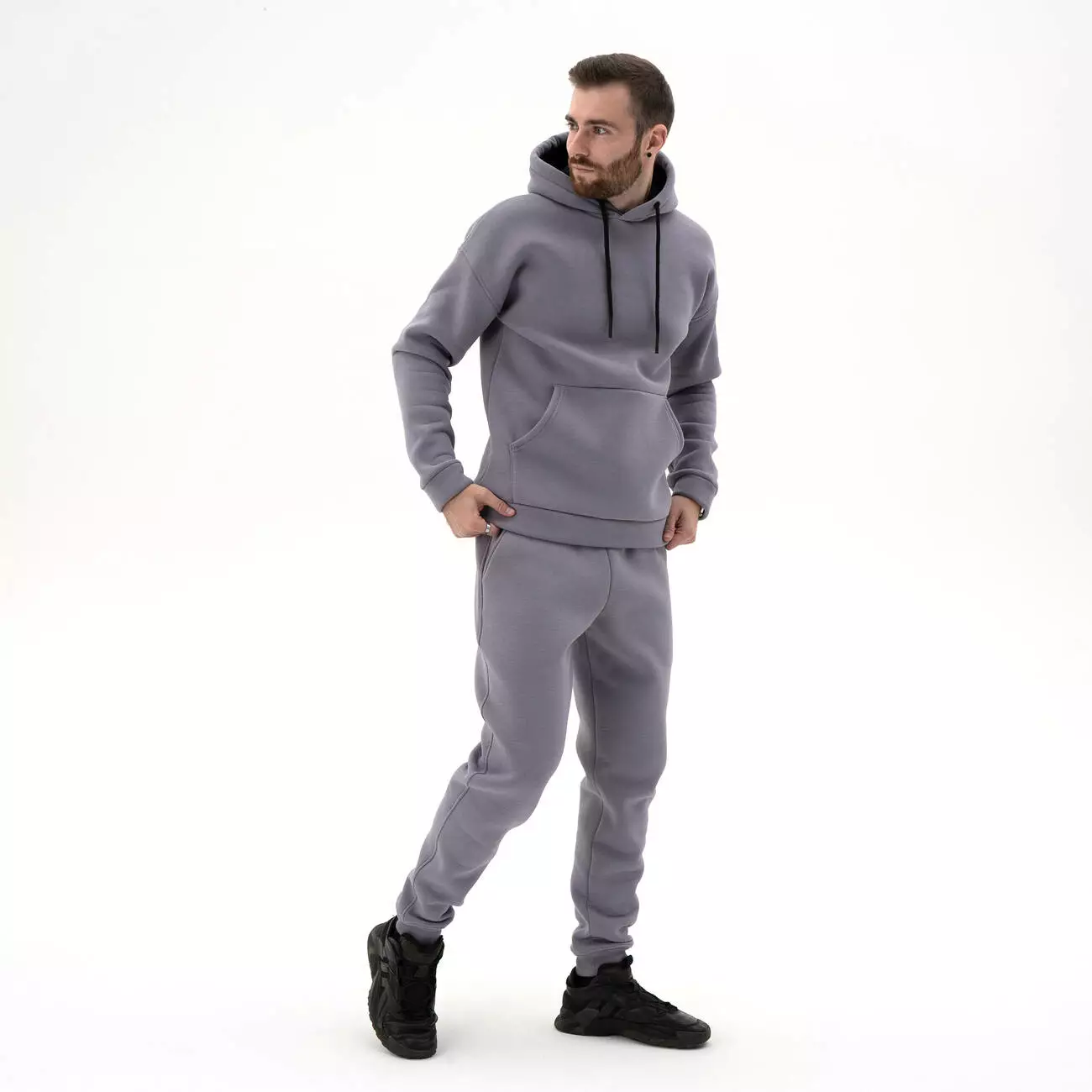 Мужской теплый спортивный однотонный костюм. Худи с капюшоном и
