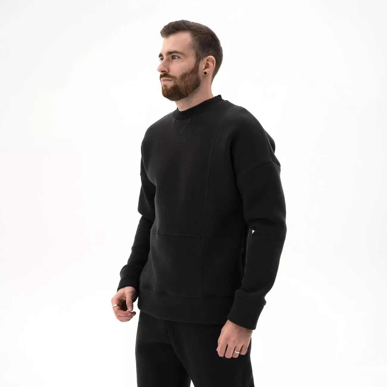 Мужской теплый свитшот свободного кроя. Свитшот с отделкой швом