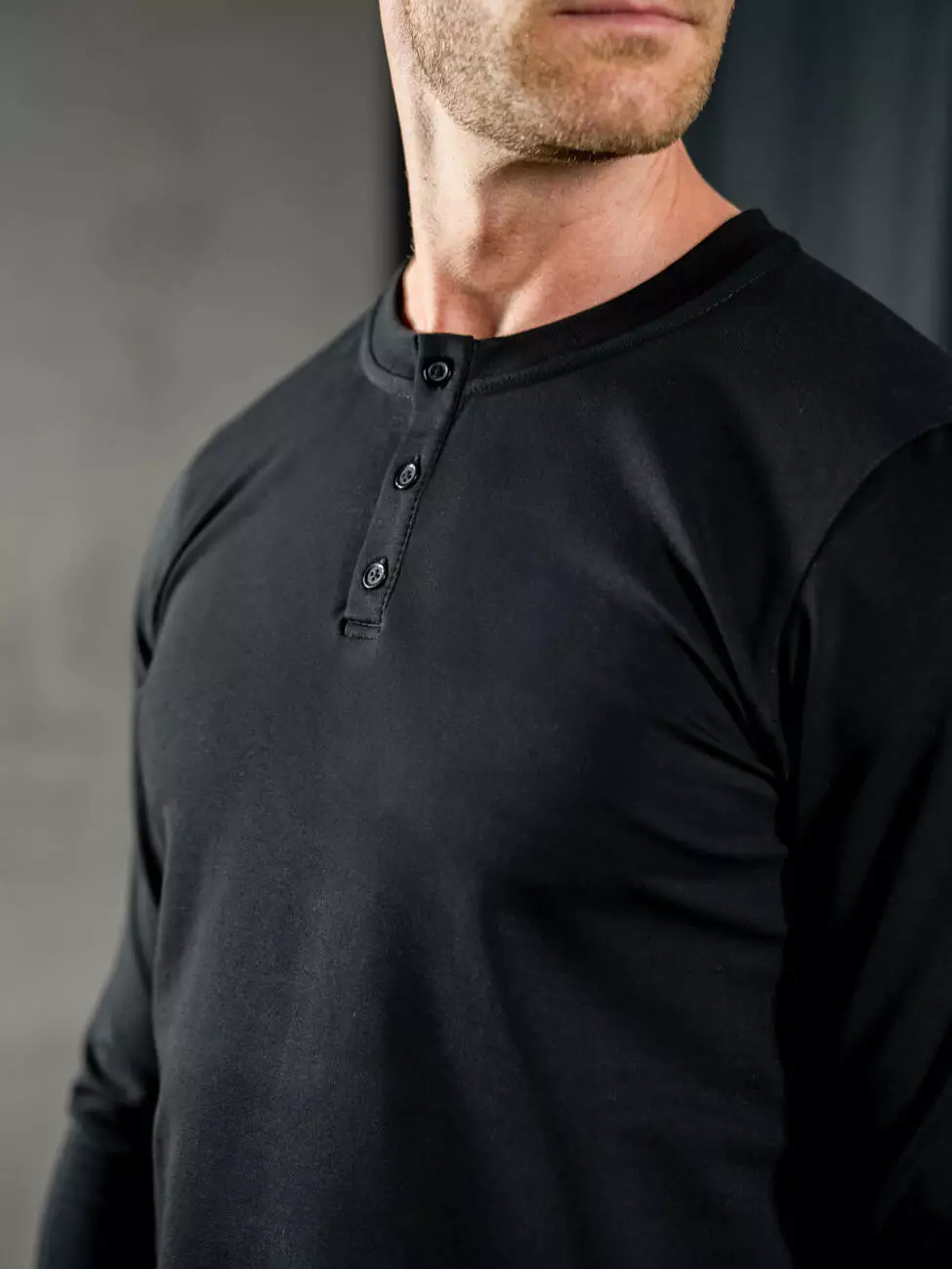 Мужской трикотажный лонгслив с планкой на пуговицах, эластичным