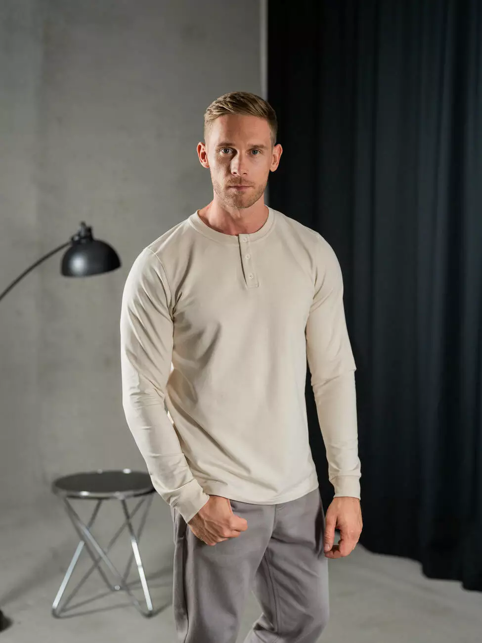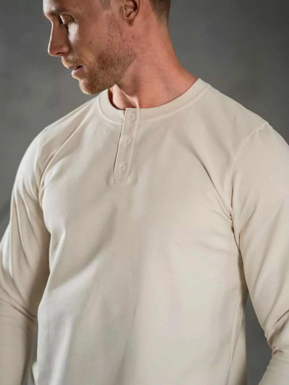 Мужской трикотажный лонгслив с планкой на пуговицах, эластичным
