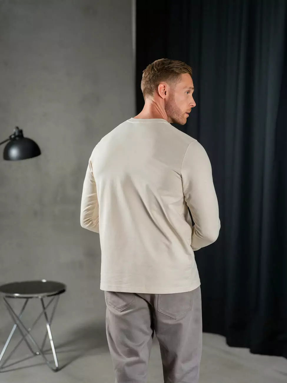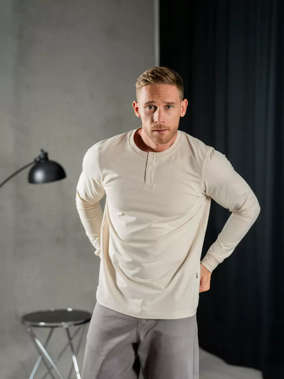 Мужской трикотажный лонгслив с планкой на пуговицах, эластичным