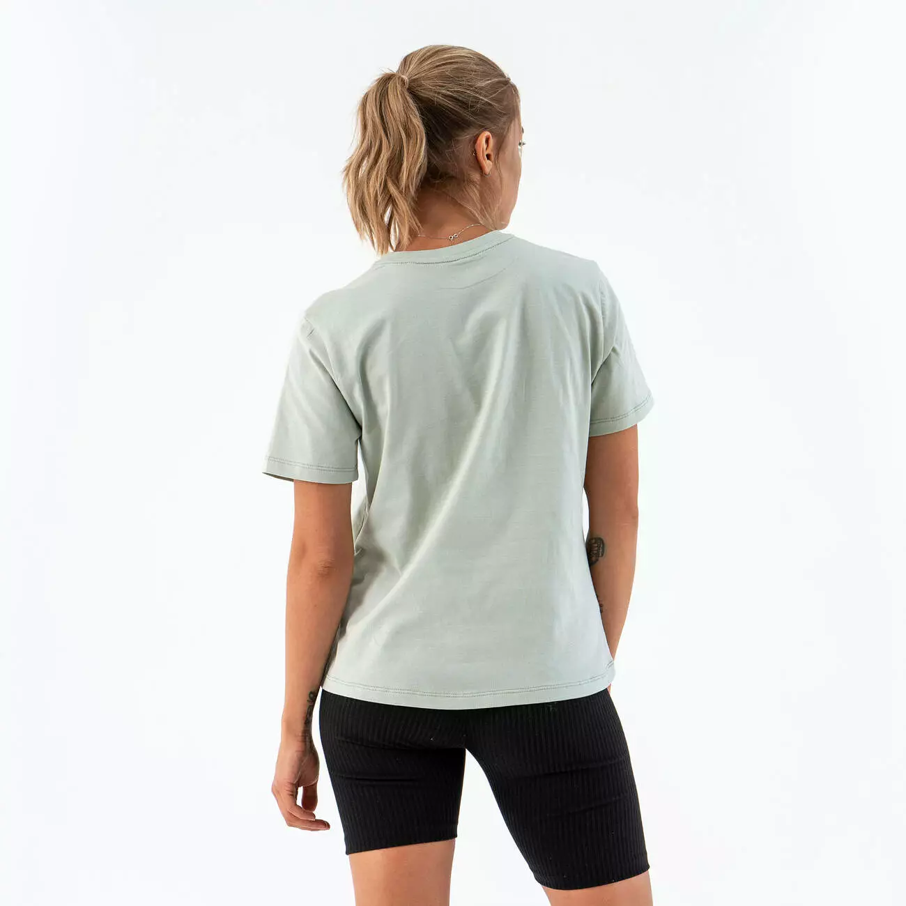 Женская трикотажная базовая футболка, удлиненная сзади.