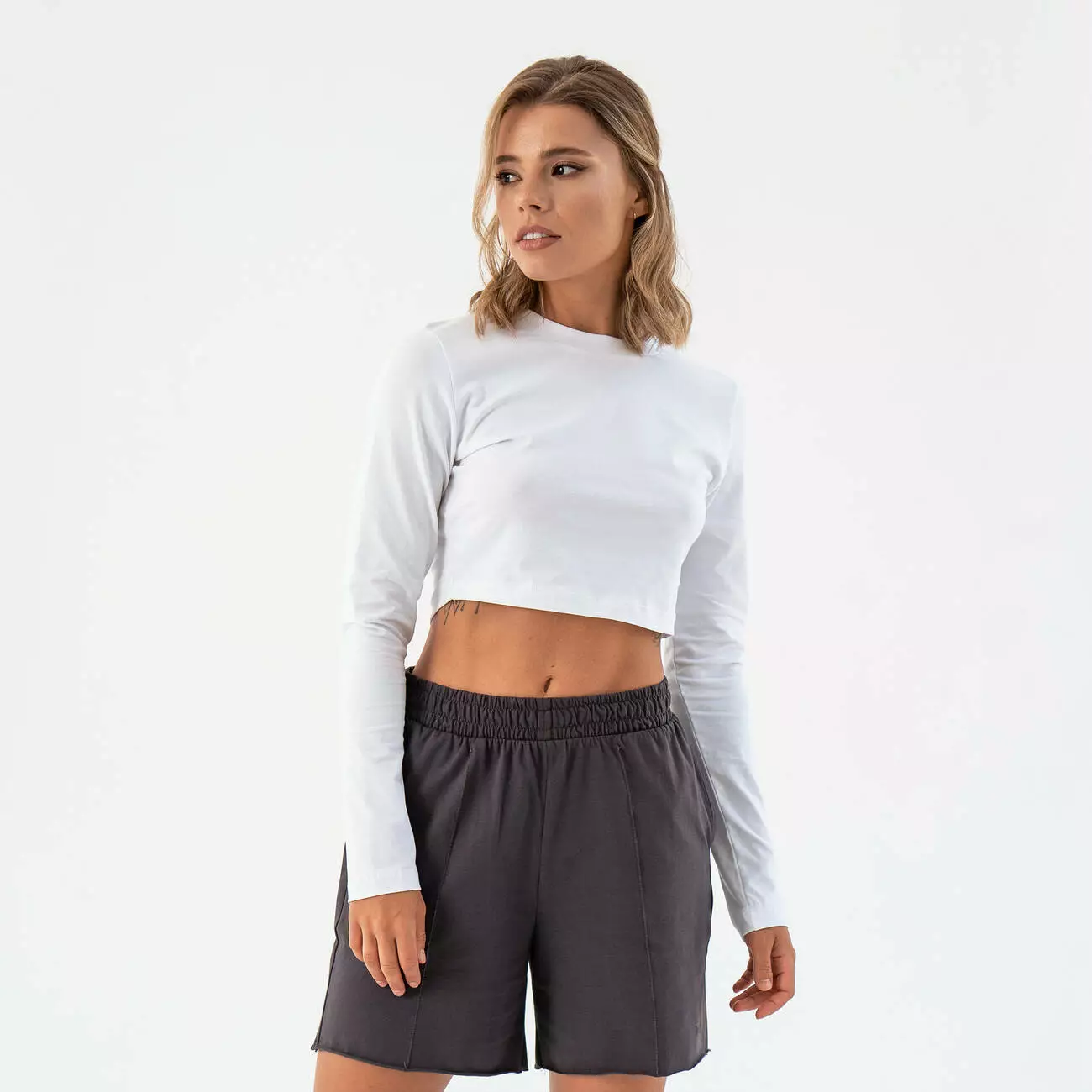Женская трикотажная футболка c длинными рукавами. Укороченный лонгслив из легкой ткани.