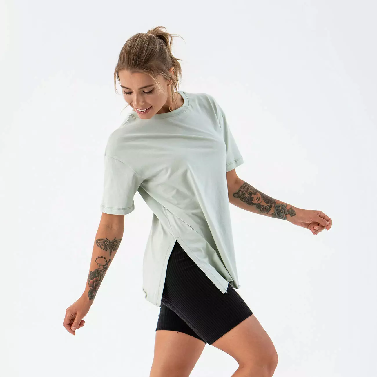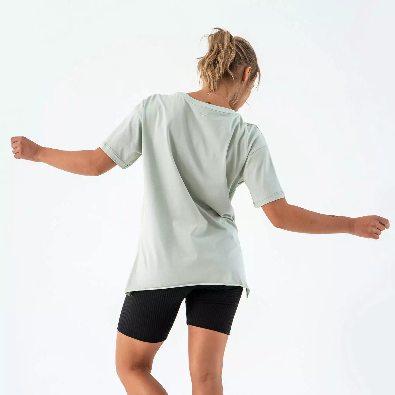 Женская футболка удлиненная с разрезами Teamv Long Фисташковая