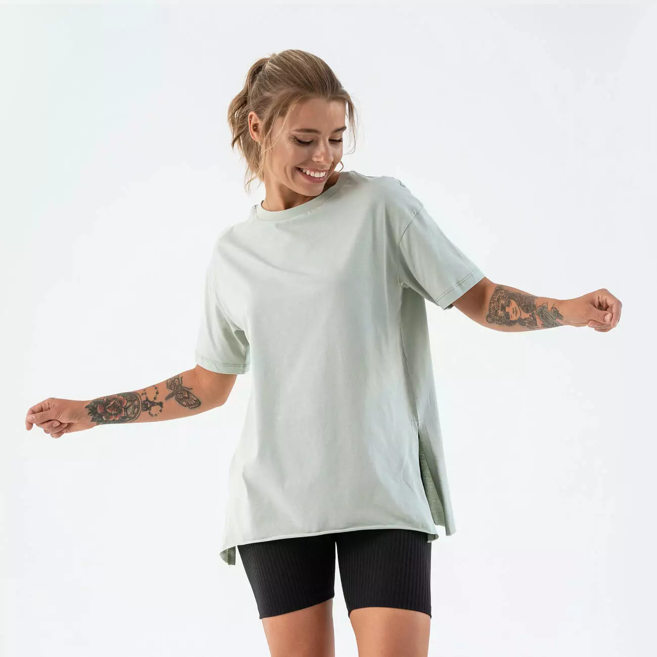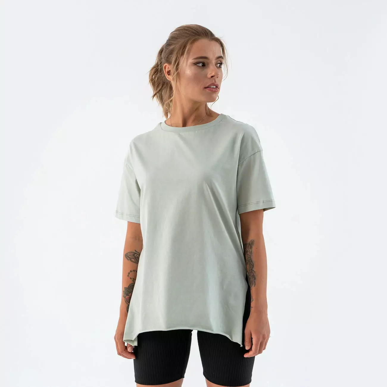 Женская футболка удлиненная с разрезами Teamv Long Фисташковая