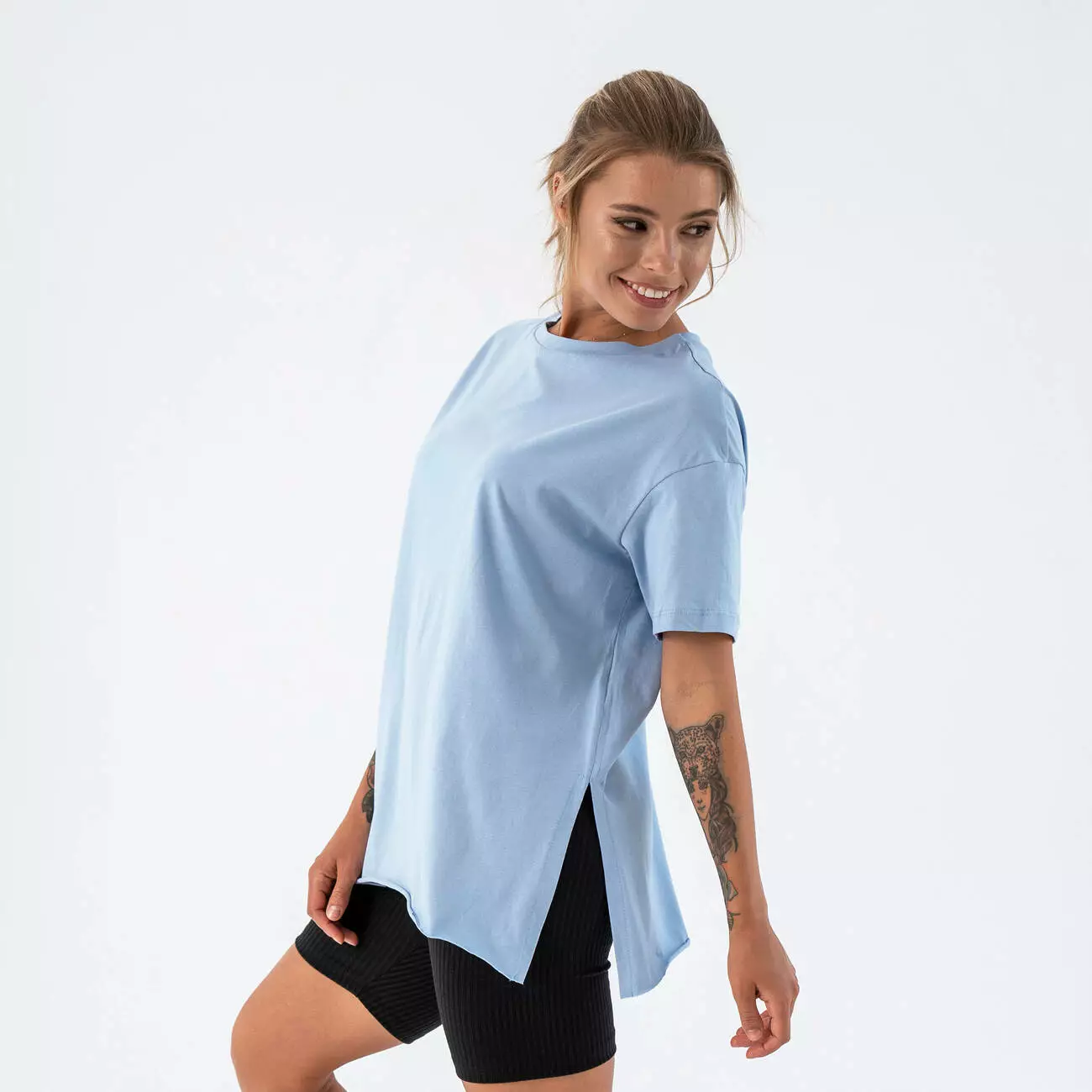 Женская футболка удлиненная с разрезами Teamv Long Голубая