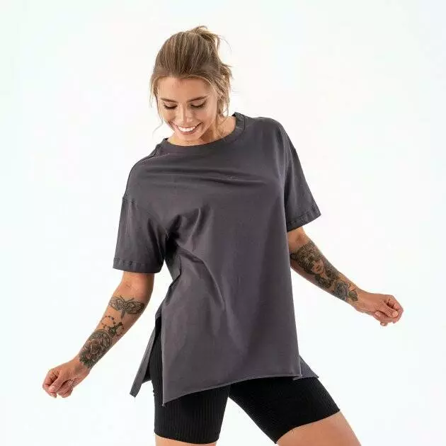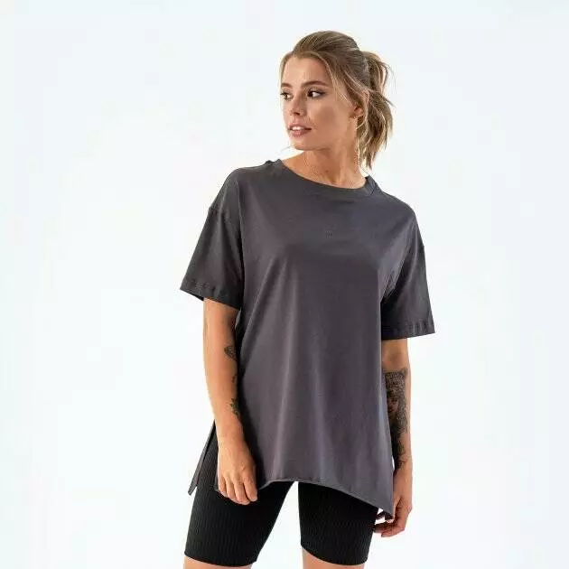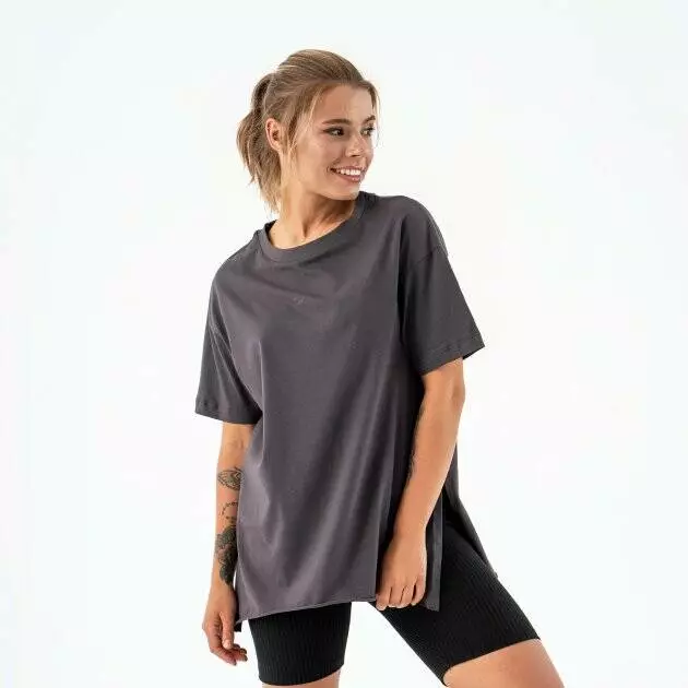 Женская футболка удлиненная с разрезами Teamv Long Пепельная