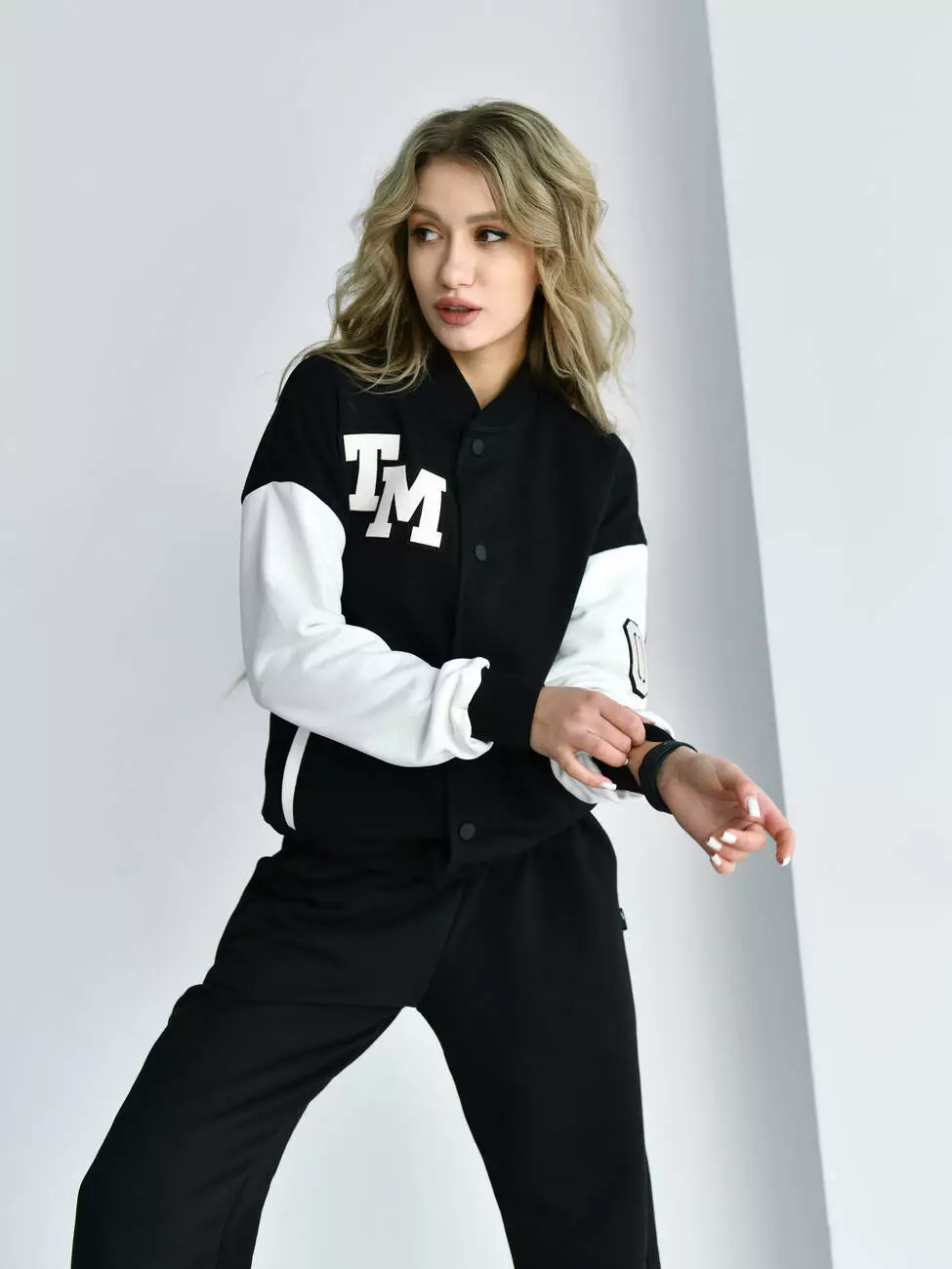 Женская кофта бомбер с контрастными рукавами и брендированными