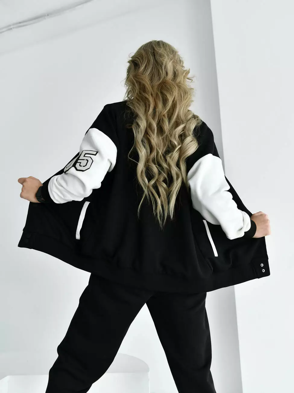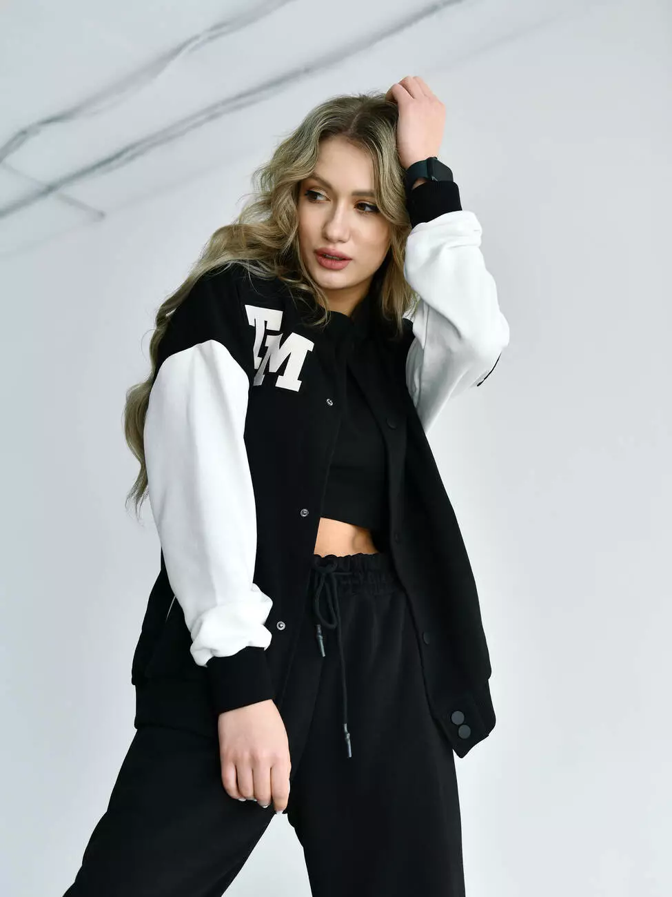 Женская кофта бомбер с контрастными рукавами и брендированными
