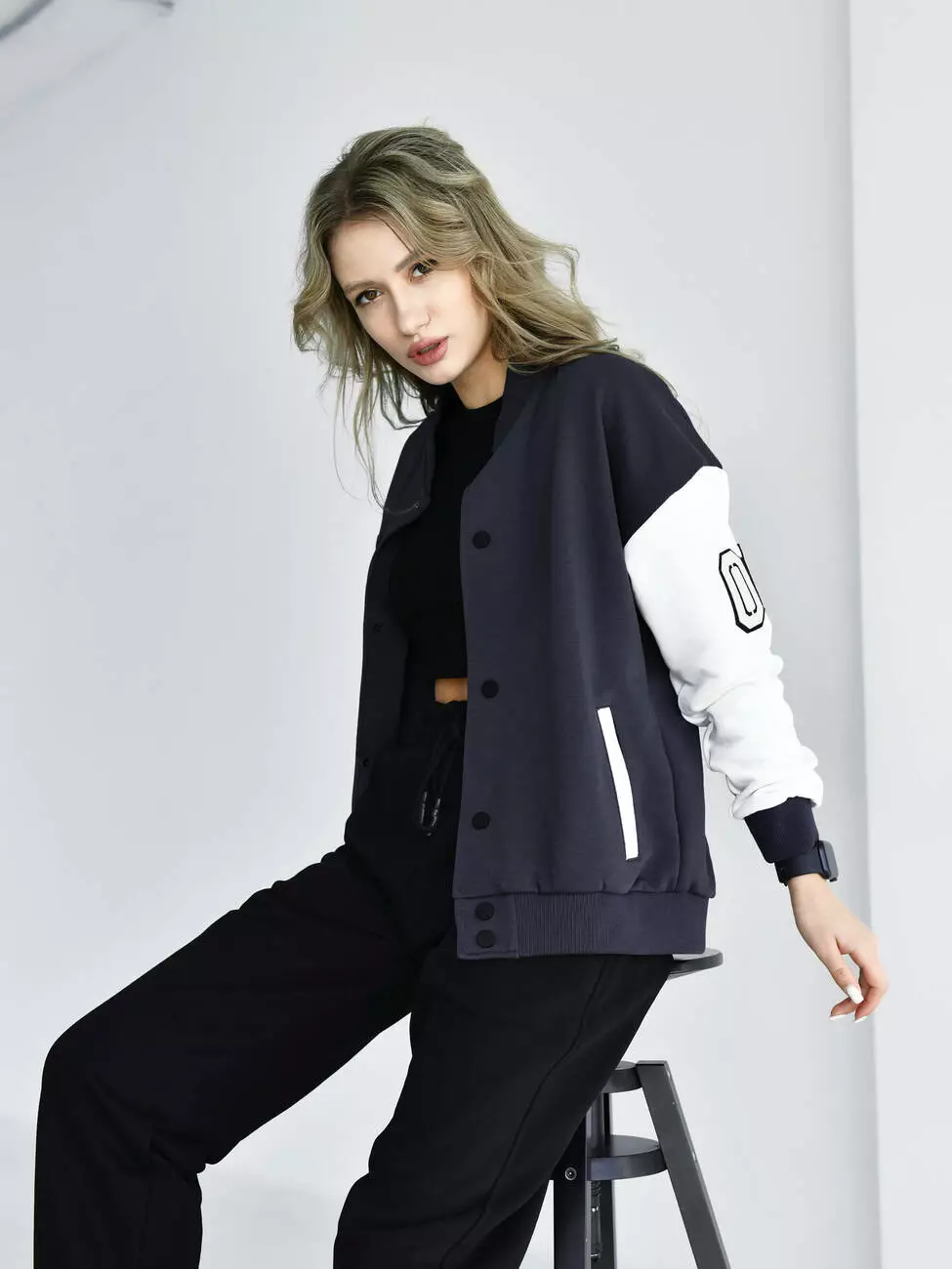 Женская кофта бомбер с контрастными рукавами и брендированными