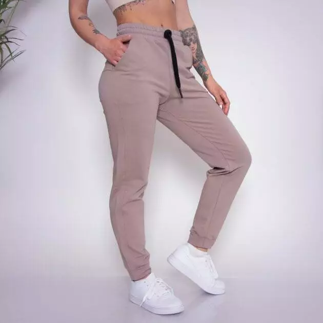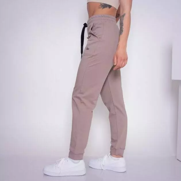высокой посадкой, боковыми карманами без змейки и эластичными