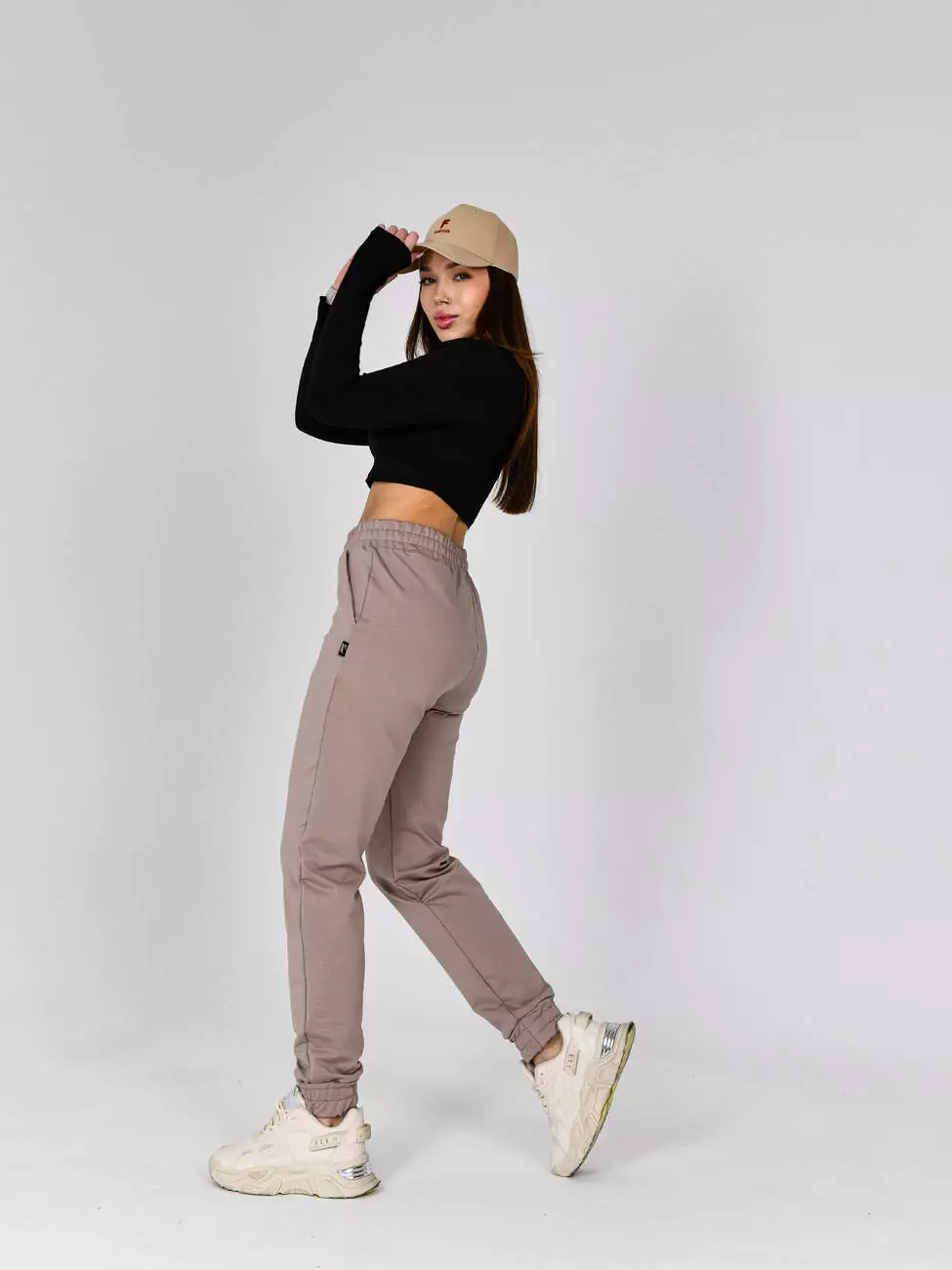 Свободные спортивные штаны в Casual стиле. Штаны с высокой посадкой, широким поясом и манжетами на резинке.