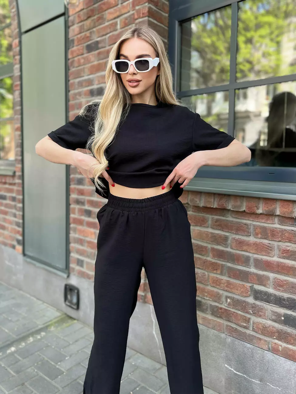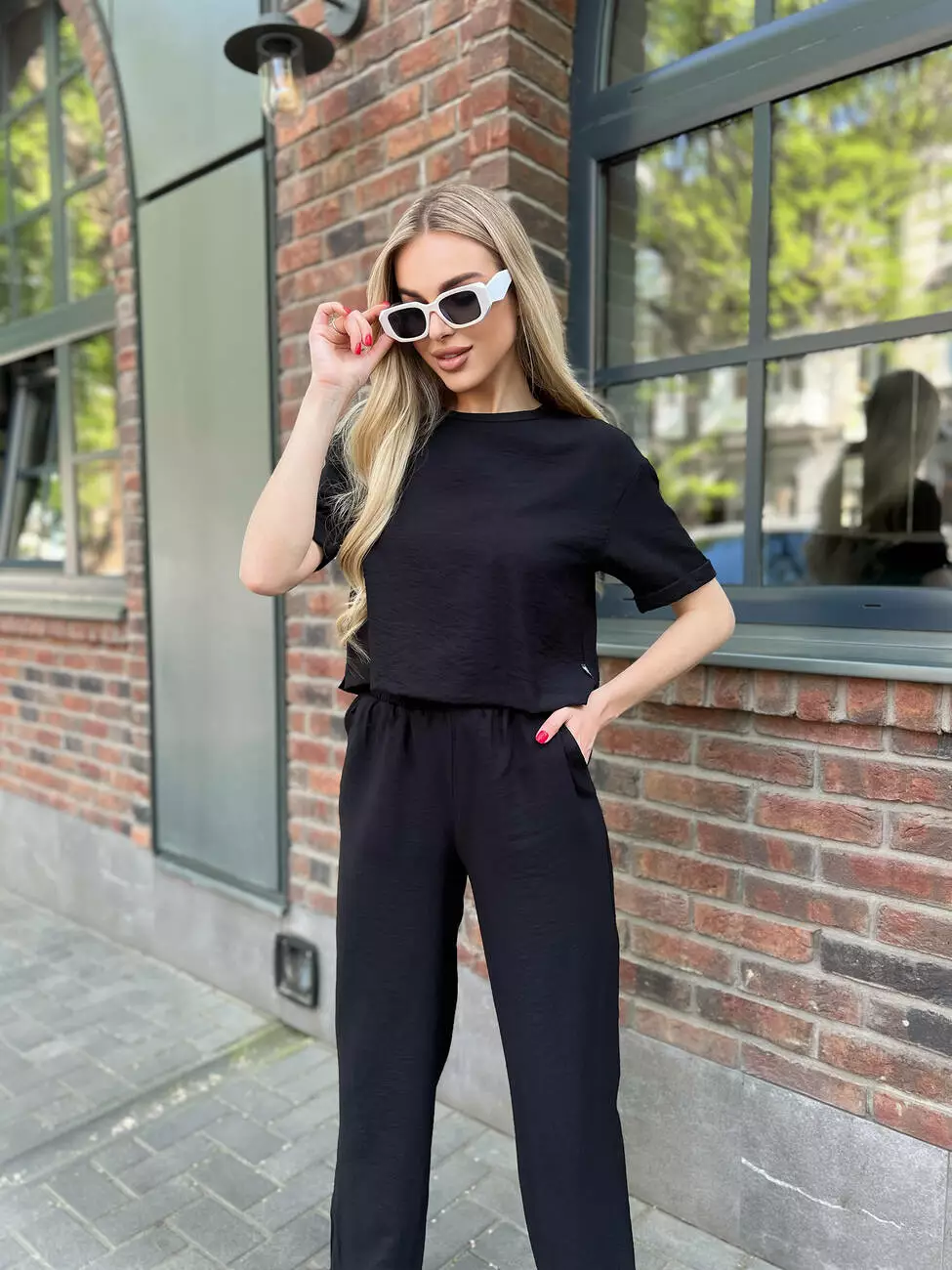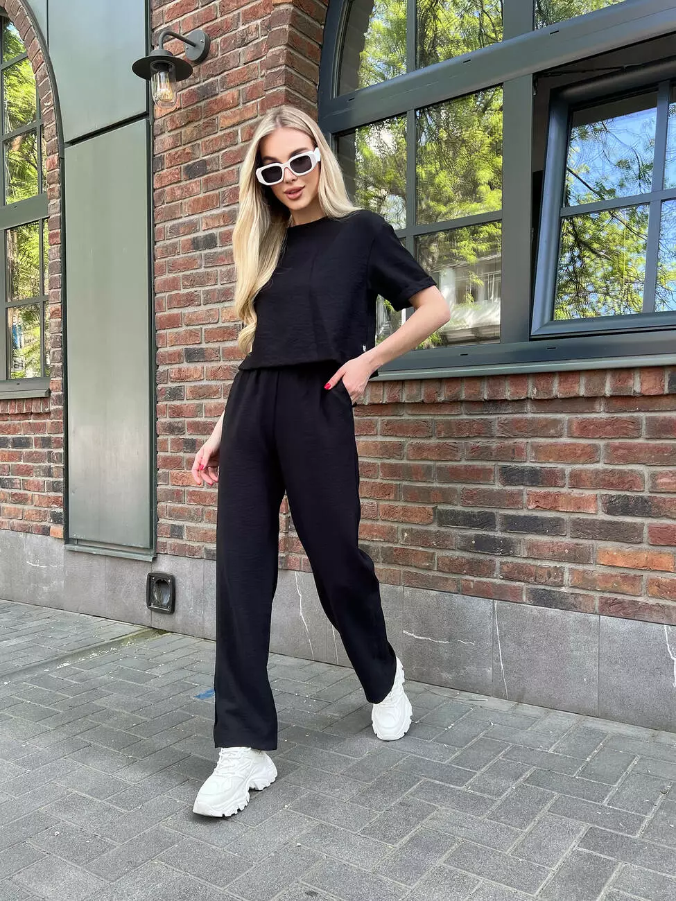 Идеальный женский костюм с широкими штанами на летний сезон.