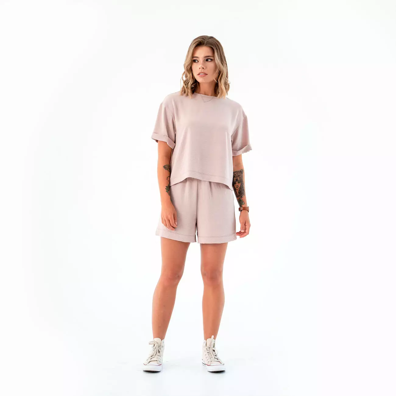Женский комплект шорты и футболка из тонкого материала креп, с